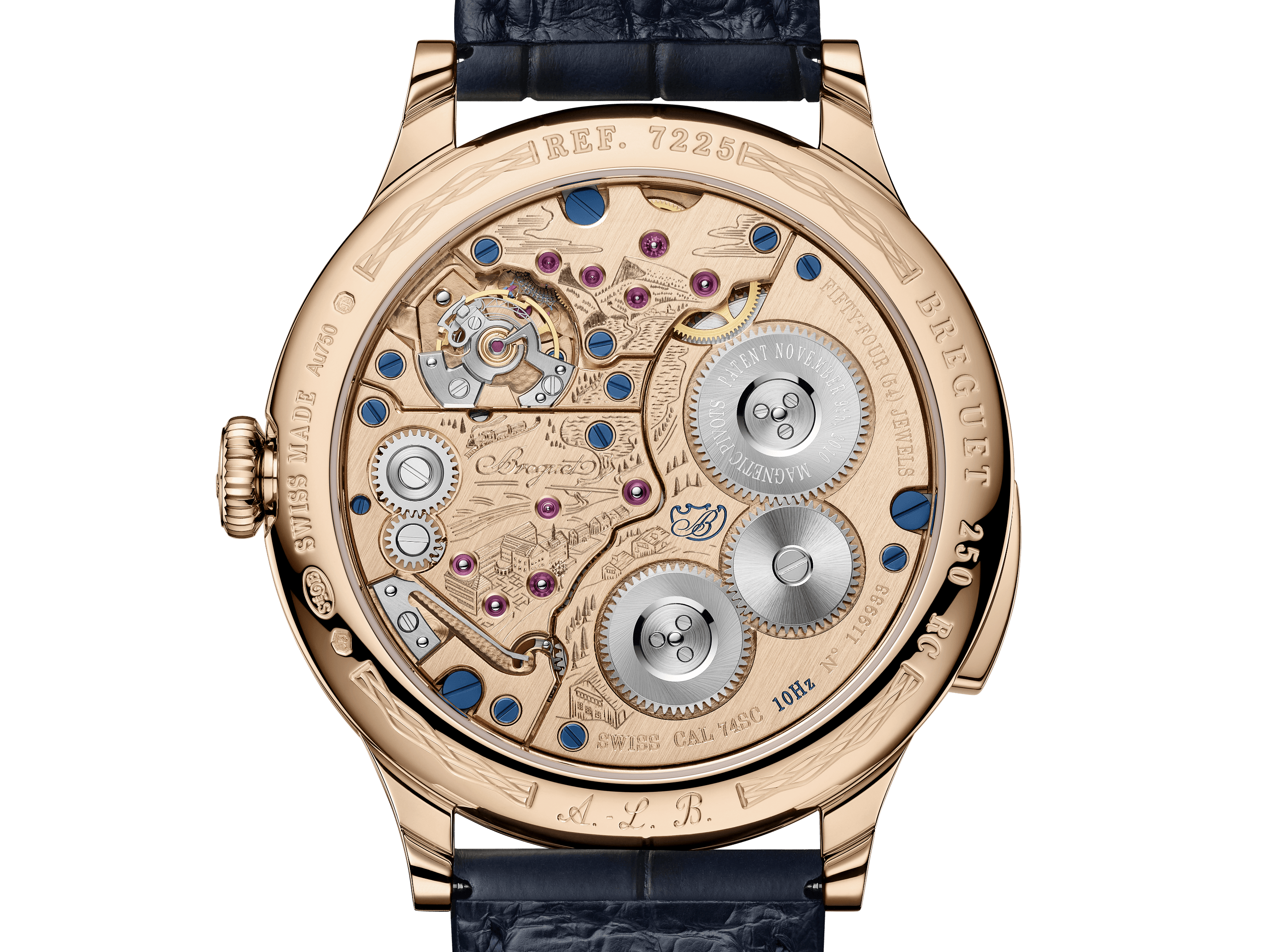 Diese Kreationen waren das Nonplusultra, was der Uhrmachermeister seiner Kundschaft in Sachen Zeitmessung zu bieten hatte. Anlässlich ihres 250-jährigen Jubiläums knüpft die Manufaktur Breguet jetzt an diese Tradition an und präsentiert die Classique 7225, mit magnetisch gelagerten Unruhzapfen und einer Hemmung mit hoher Frequenz (10 Hz).