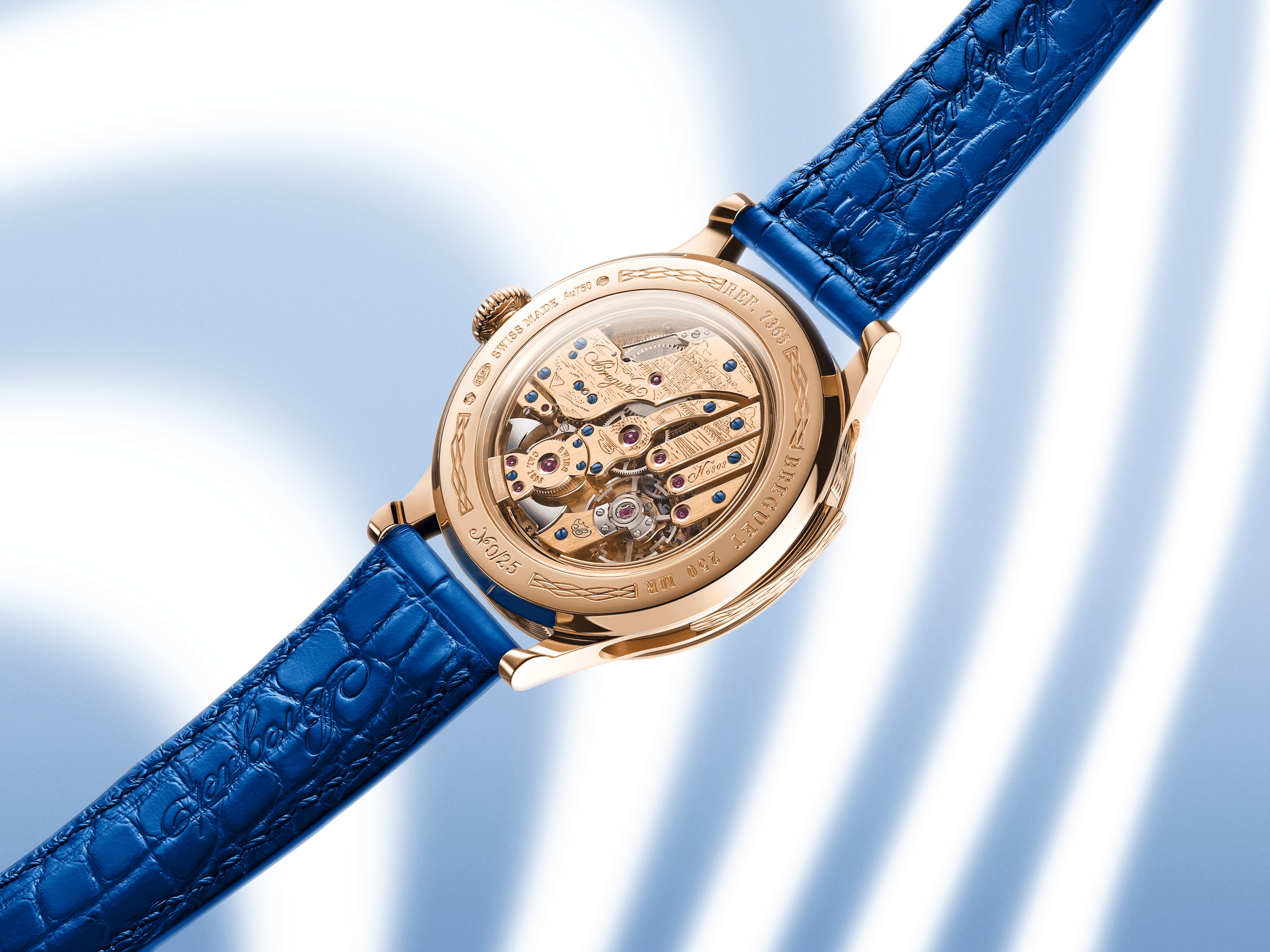 It is powered by a new movement; it is the first water-resistant minute repeater ever created by Breguet and is only one to offer a 75-hour power reserve. It is also the first watch of this type in Breguet gold (case and calibre), with a unique dial in Bleu de France grand feu enamel. Its case is directly inspired by the Souscription watch that launched the manufacture’s anniversary celebrations this, year and aligns with the new aesthetic codes of the brand’s Classique line of watches.