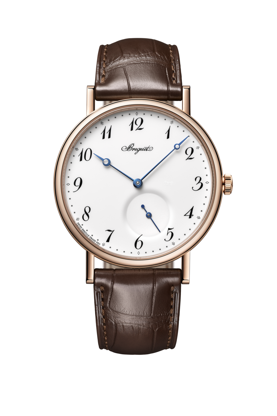 Bei der emaillierten Version lässt sich die Zeit über Breguet-Zeiger mit „Pomme"-Spitze und arabischen Breguet-Ziffern ablesen, die beide vom Meister selbst gestaltet wurden. Das guillochierte Modell vereint das „Clous de Paris“-Motiv und das „Korbmuster“, die von römischen Ziffern umgeben sind. Alle Versionen sind mit einer diskreten Geheimsignatur versehen, einem weiteren Vermächtnis von A.-L. Breguet, das die Authentizität der Uhr garantiert. Hinsichtlich der Technik verfügt dieses Modell über ein ultraflaches, handverziertes Automatikwerk mit dezentraler Schwungmasse.