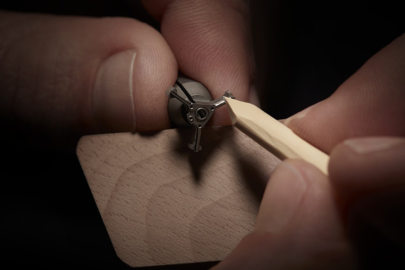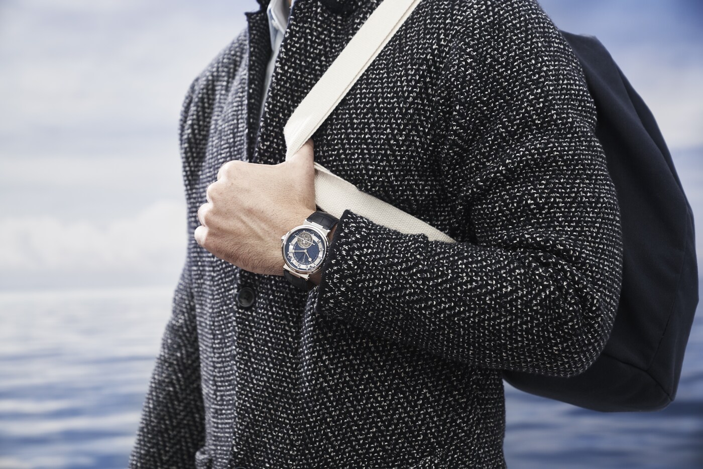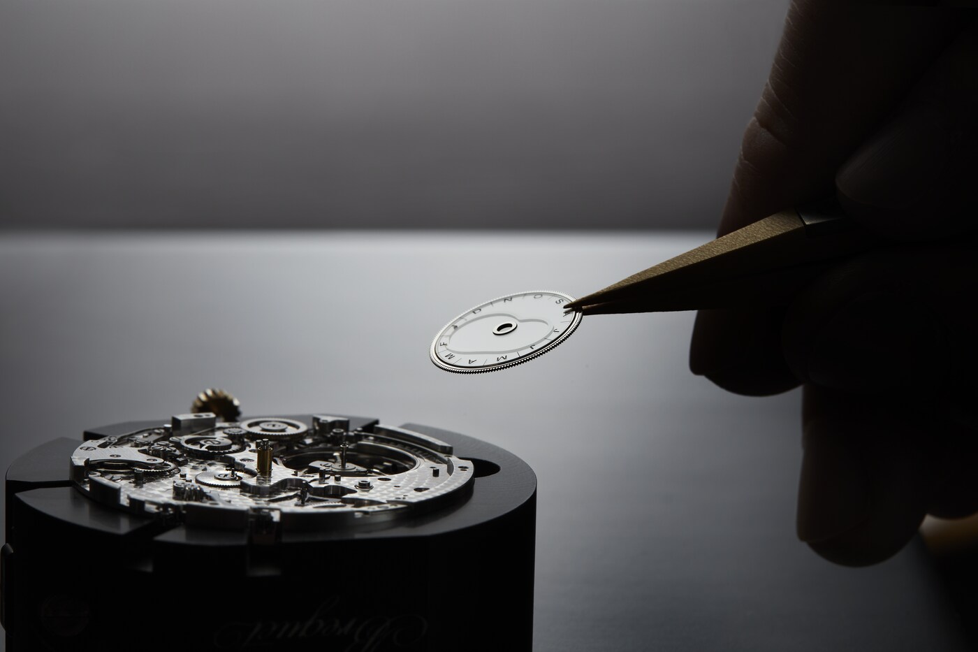 Bei 5 Uhr befindet sich ein Tourbillon. Darüber hinaus verfügt diese Uhr mit großer Komplikation auch über einen Ewigen Kalender und eine laufende Zeitgleichung.