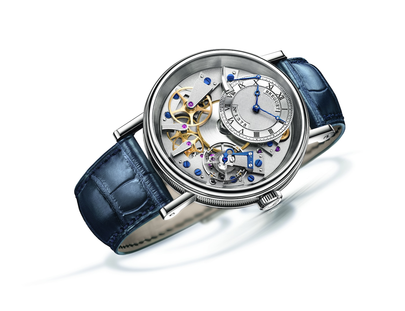 Getreu allen Codes der Linie ist sie mit einem Uhrwerk ausgestattet, das eine Gangreserve von 50 Stunden besitzt. Das kleine, handguillochierte Goldzifferblatt gibt den Blick frei auf fast alle Komponenten auf beiden Seiten der zentralen Platine, darunter Brücken, Räderwerk, Hemmung sowie auch der berühmte „pare-chute“, eine traditionelle Stoßsicherung aus handangliertem Stahl.