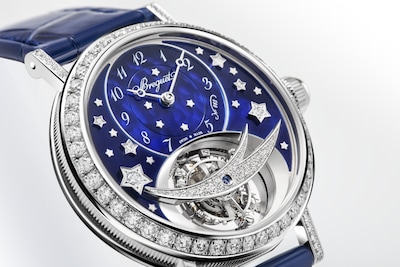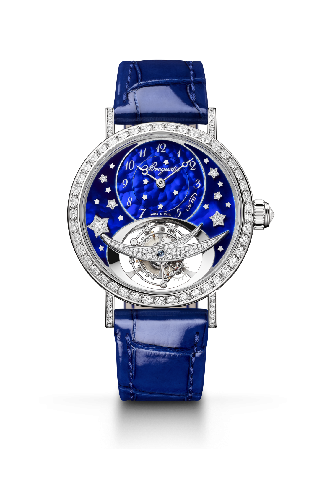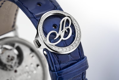 This 35mm model features a double display: an hours chapter at 12 o'clock and a tourbillon at 6 o'clock.