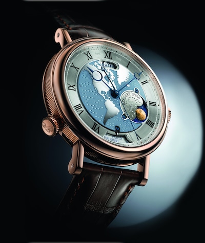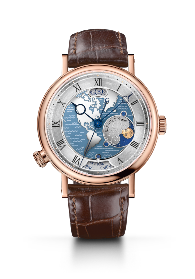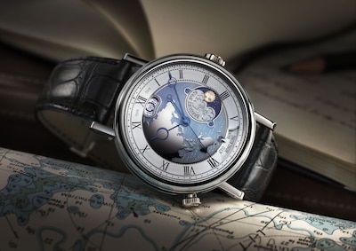Offered with a dial that represents the Americas, Europe and Africa or Asia and Oceania, this mechanical watch is the first to feature a time zone with a memory function that changes instantly.