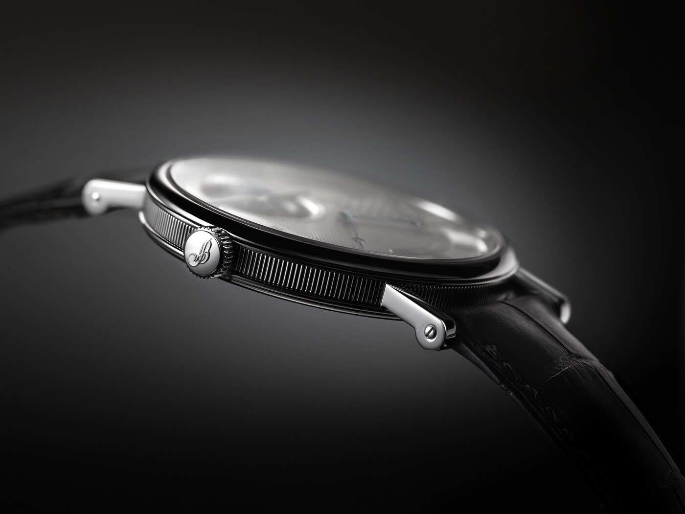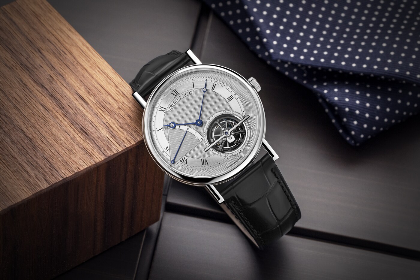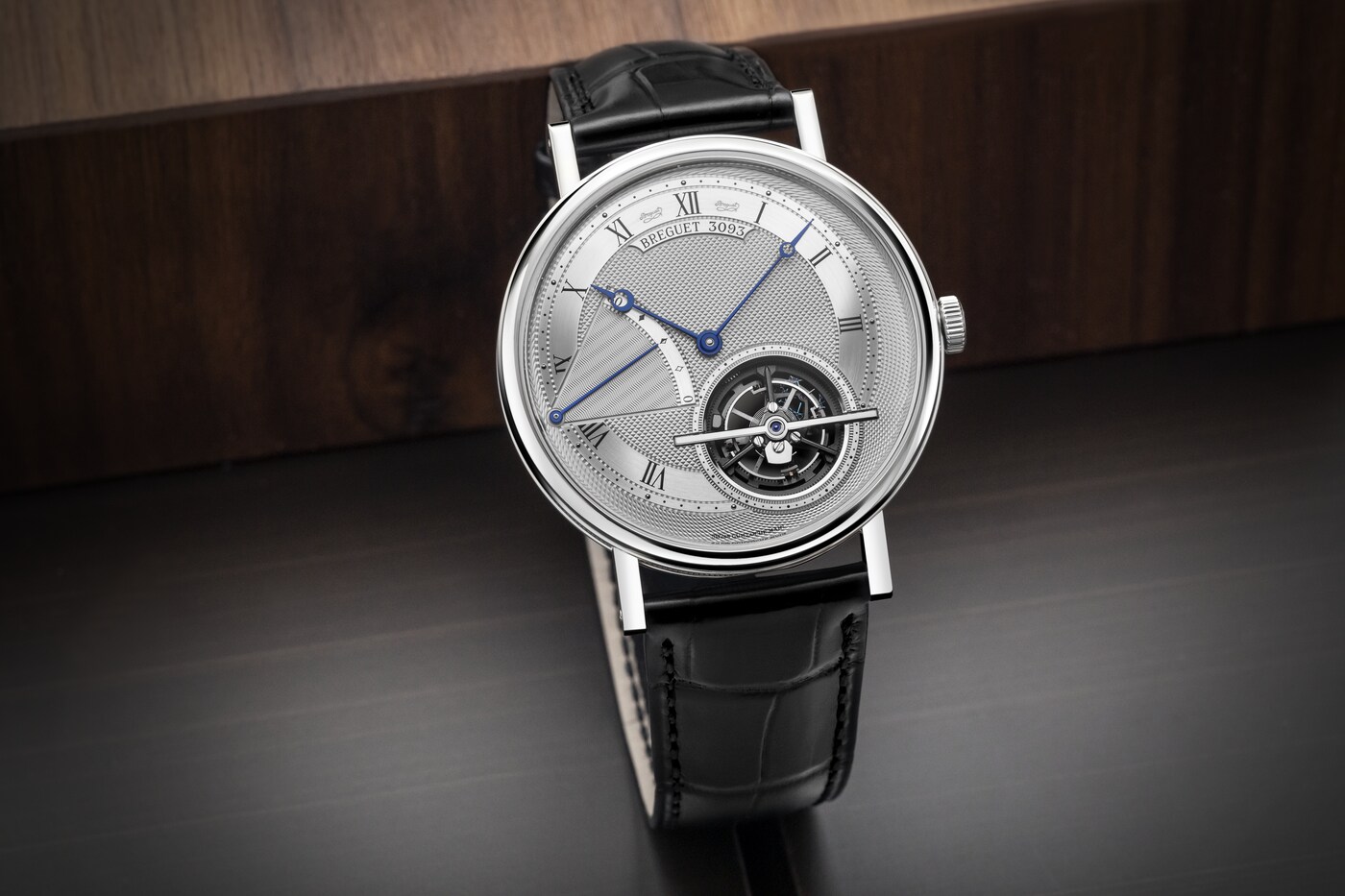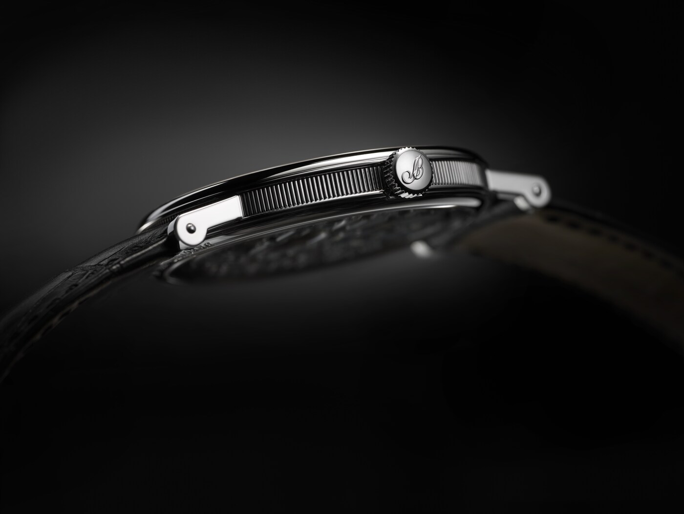 This model integrates the slimmest Breguet automatic Tourbillon movement. On its exquisite guilloché dial, we discover the Maison’s traditional hands