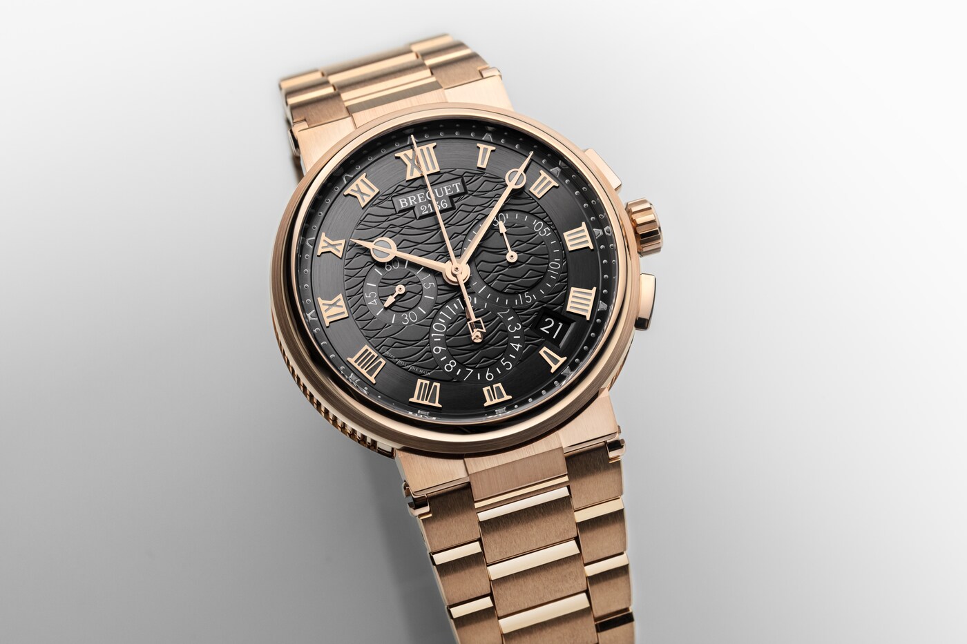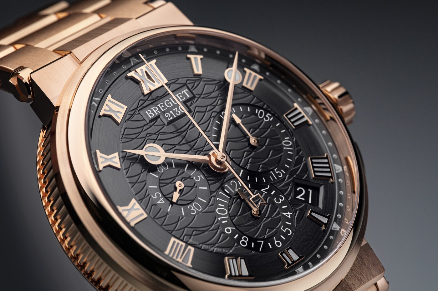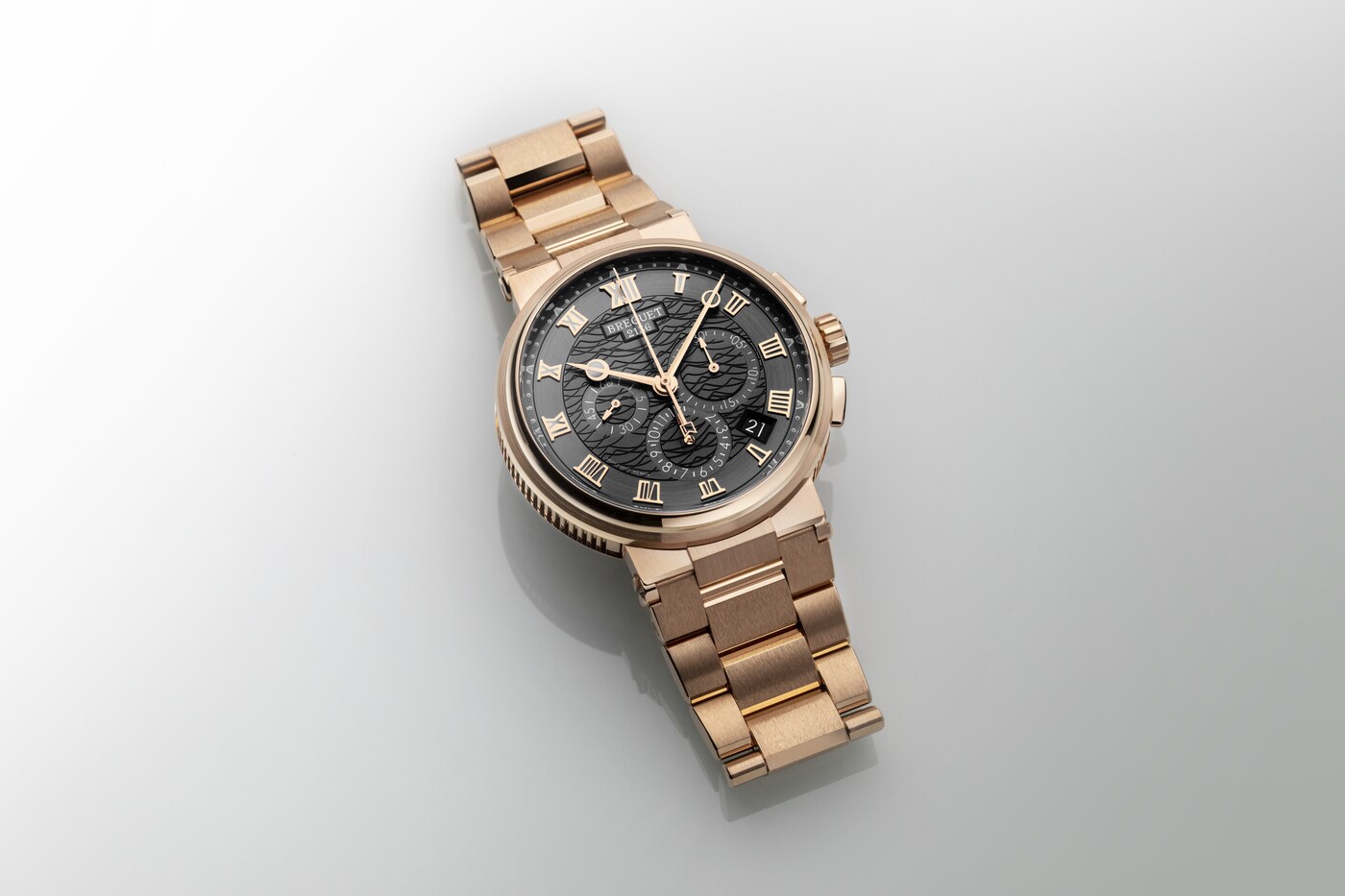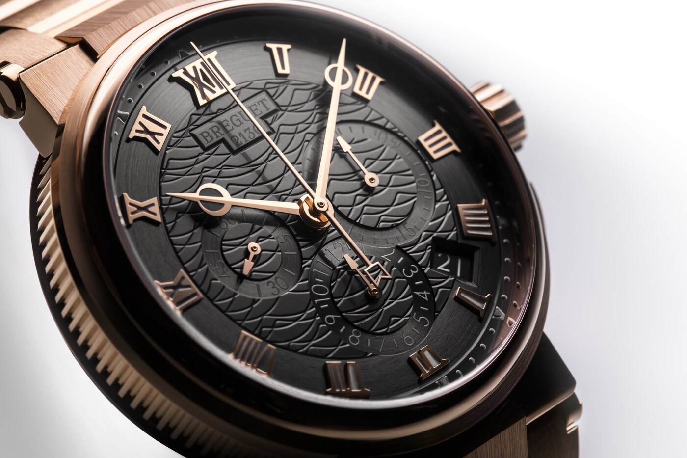 Three counters placed between 3 and 9 o’clock display the timed minutes, hours and small seconds. The chronograph hand is recognisable thanks to a subtle marine detail, whereas the time is indicated by the classic Breguet hands. Just like the numbers and the markers, they are luminescent, making it easy to read the time, even in poor lighting conditions.