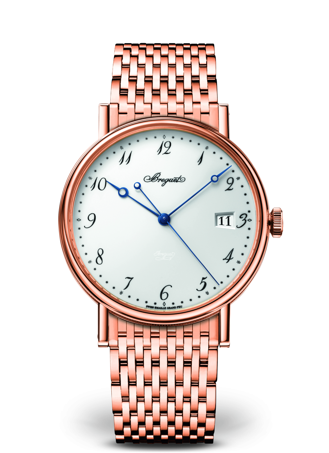 L’affichage de l’heure sur un cadran guilloché ou émaillé est complété par l’indication de la date à 3 h.