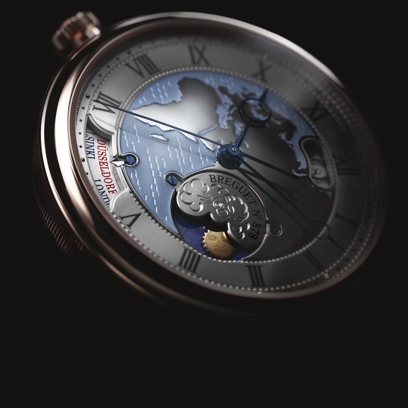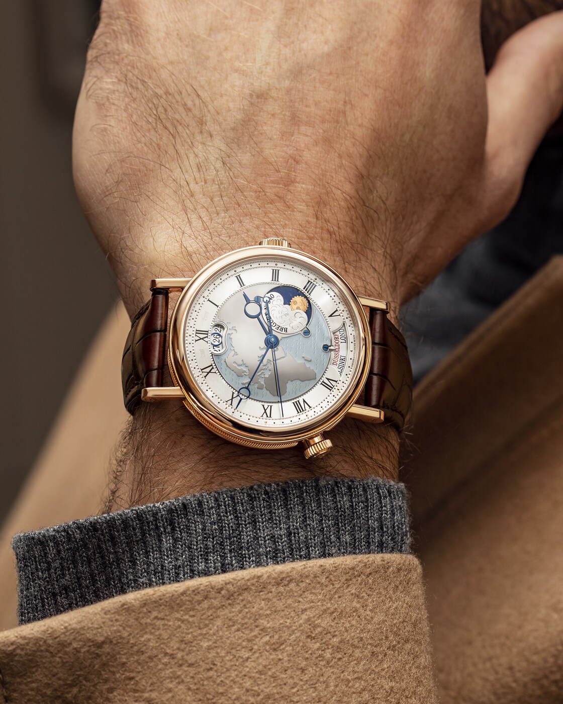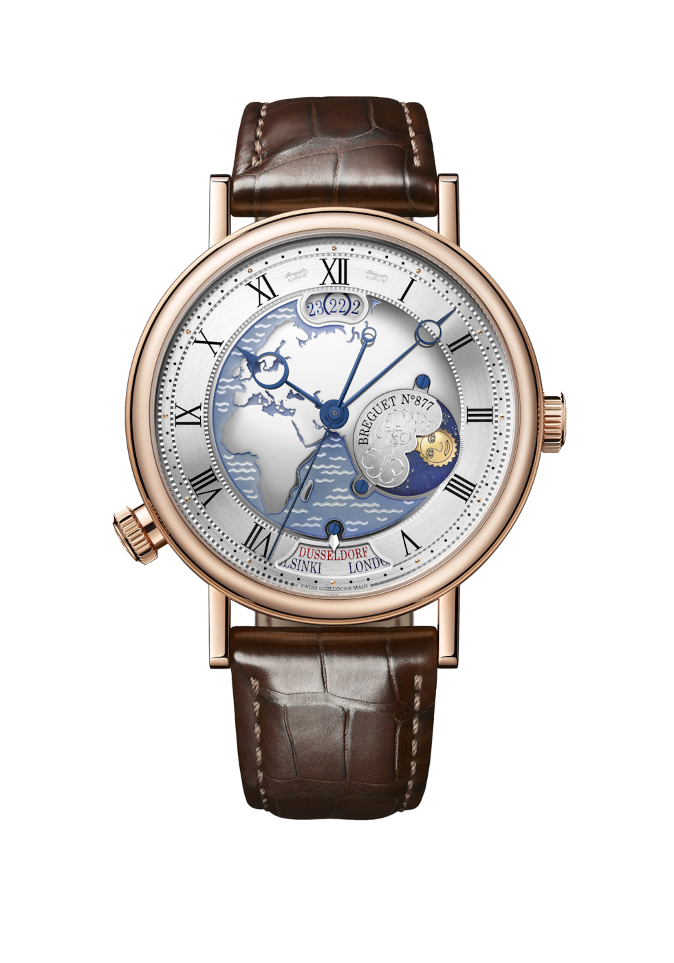Proposé avec un cadran représentant le continent américain, les continents européen et africain ou l’Asie et l’Océanie, cette montre mécanique est la première à disposer d’un fuseau horaire à mémoire et changement instantané.