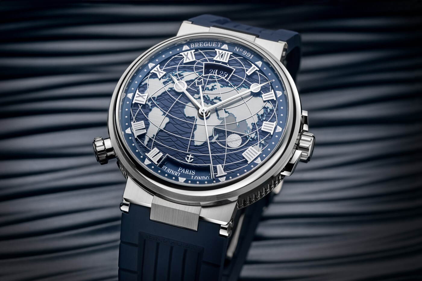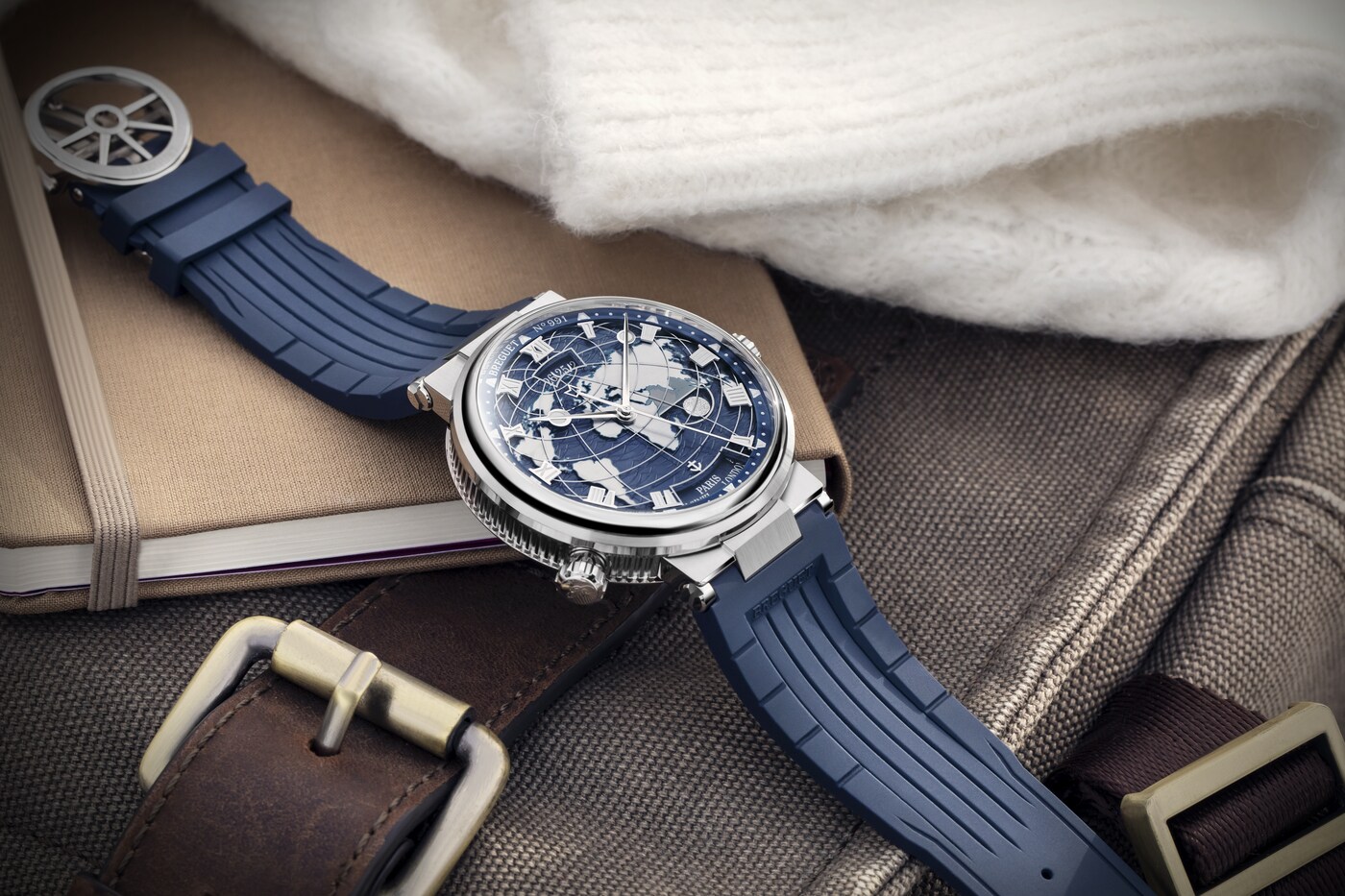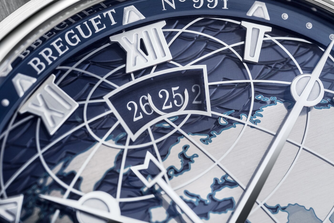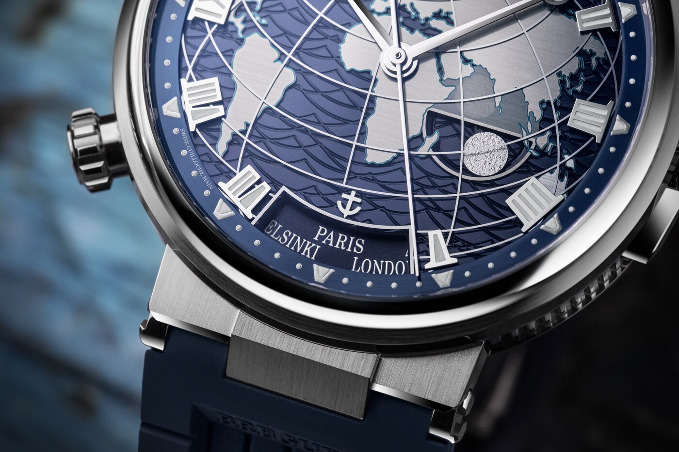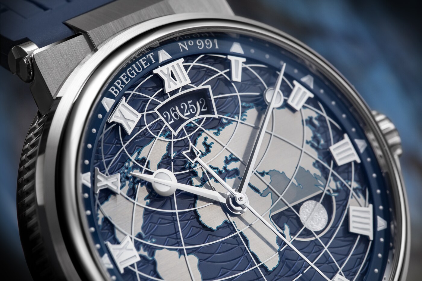 Cette montre mécanique, qui a nécessité trois années de développement et obtenu quatre brevets, bénéficie d’un double fuseau horaire à mémoire et changement instantané.