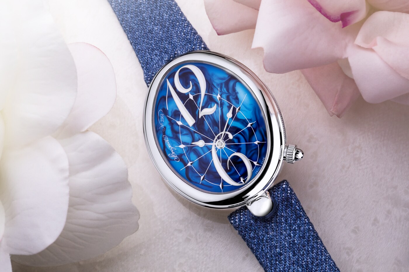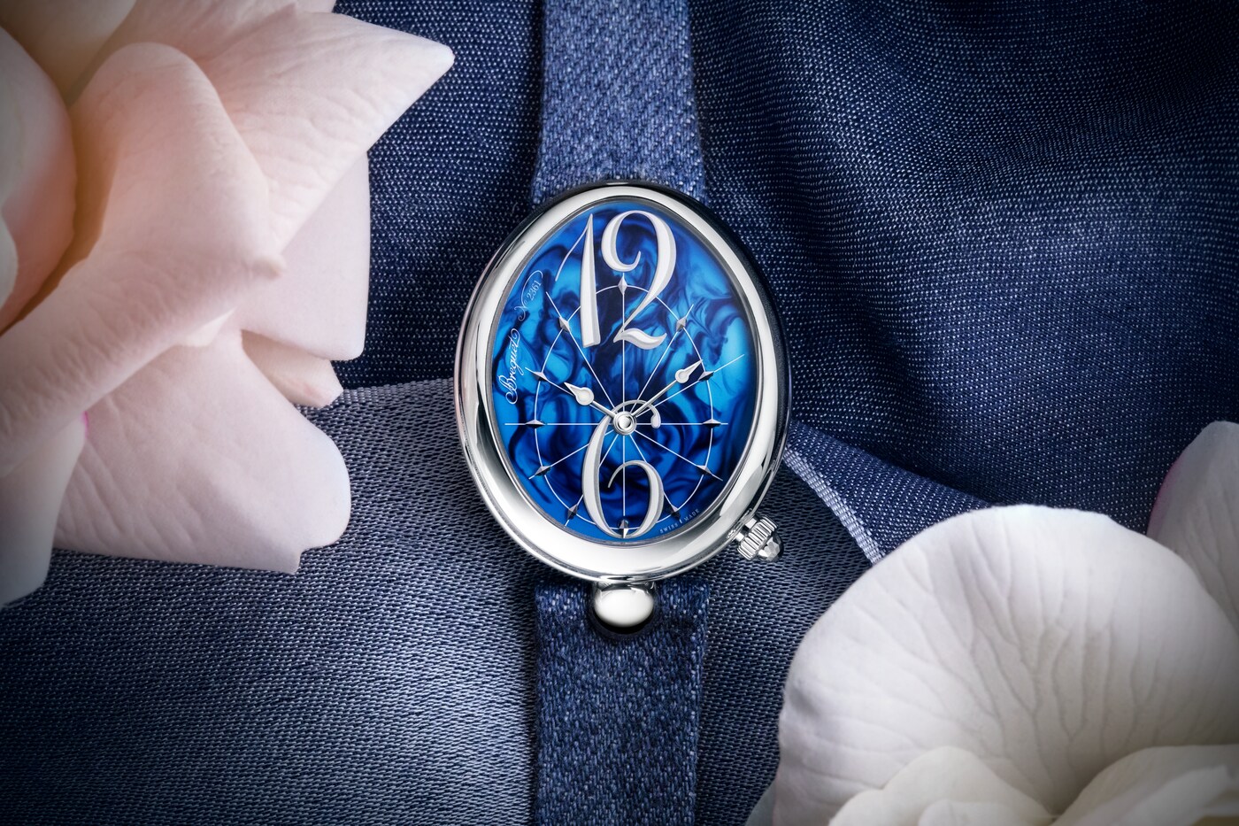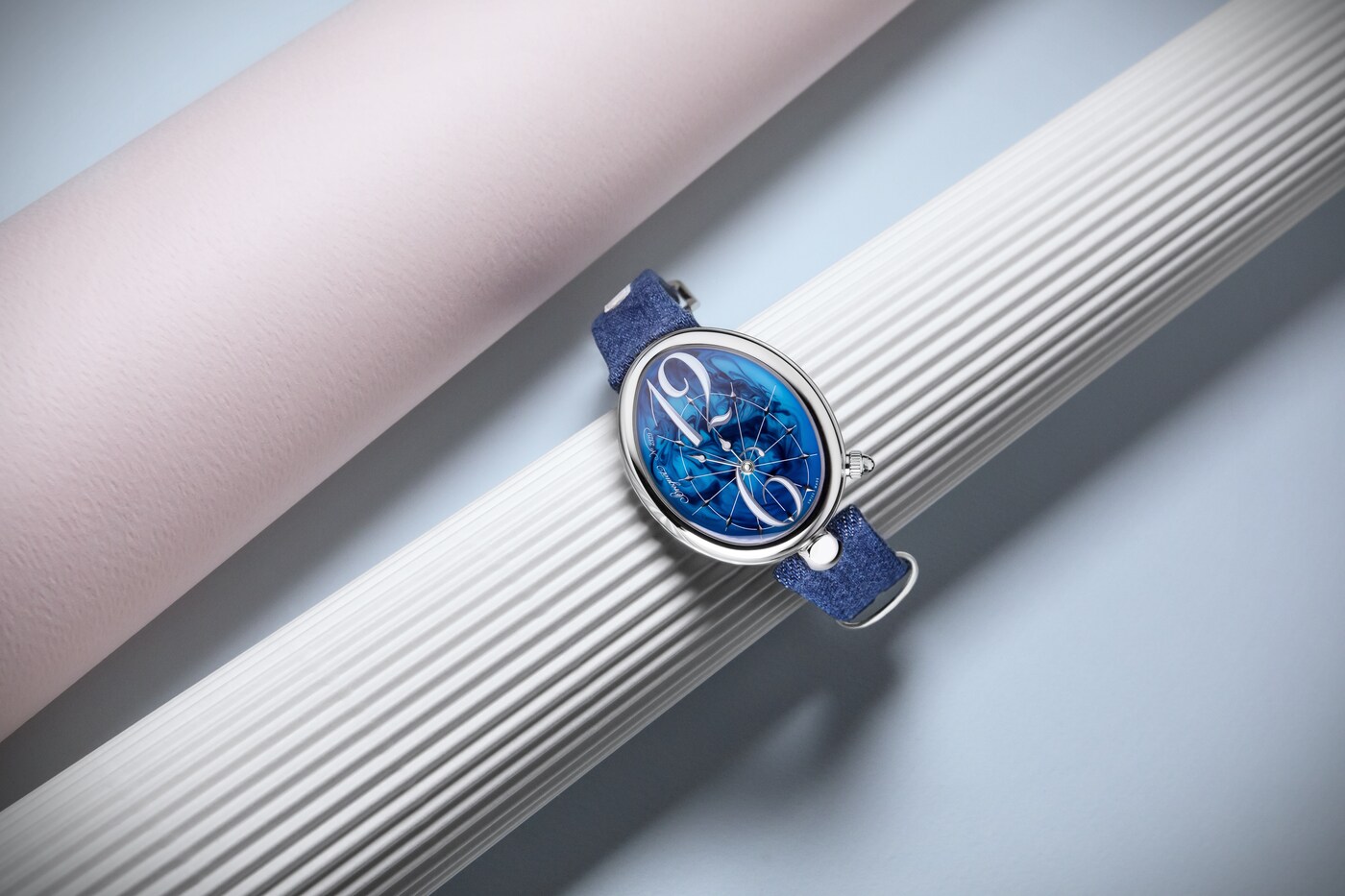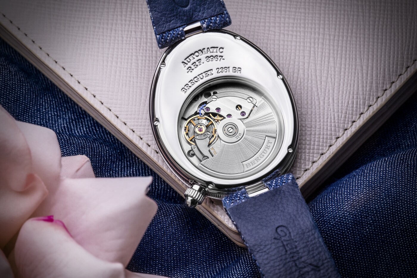 Son cadran est orné de deux chiffres arabes peints en relief, ainsi que du numéro de série de la montre, individuel. Tout comme les autres modèles de la collection, sa couronne est placée à 4 h et comporte une attache spécifique pour son bracelet. Le fond de la boîte en saphir permet d’admirer le calibre mécanique Breguet à remontage automatique. Réalisé dans le respect de la plus pure tradition horlogère, sa masse oscillante est en or massif guilloché à la main.