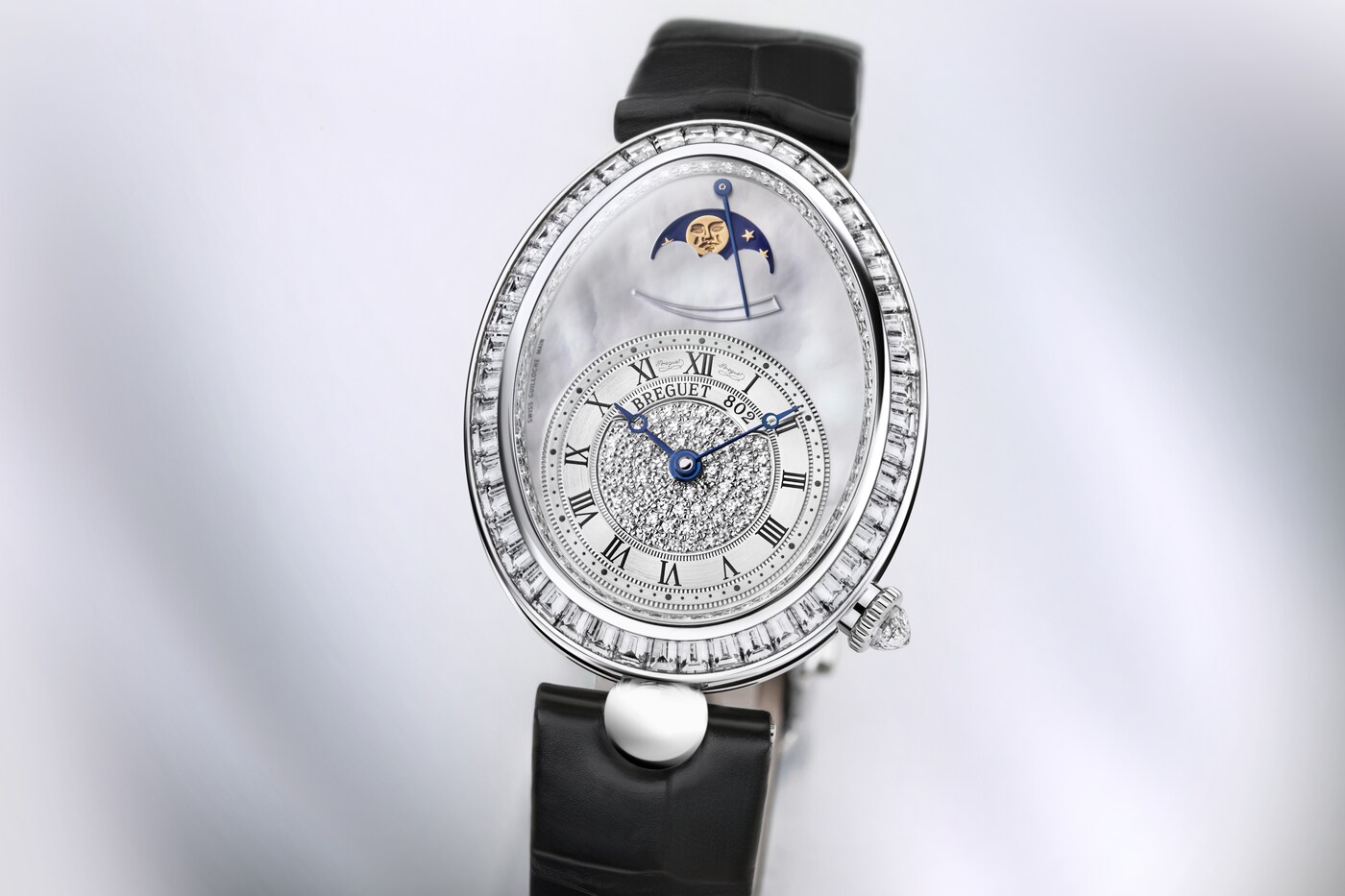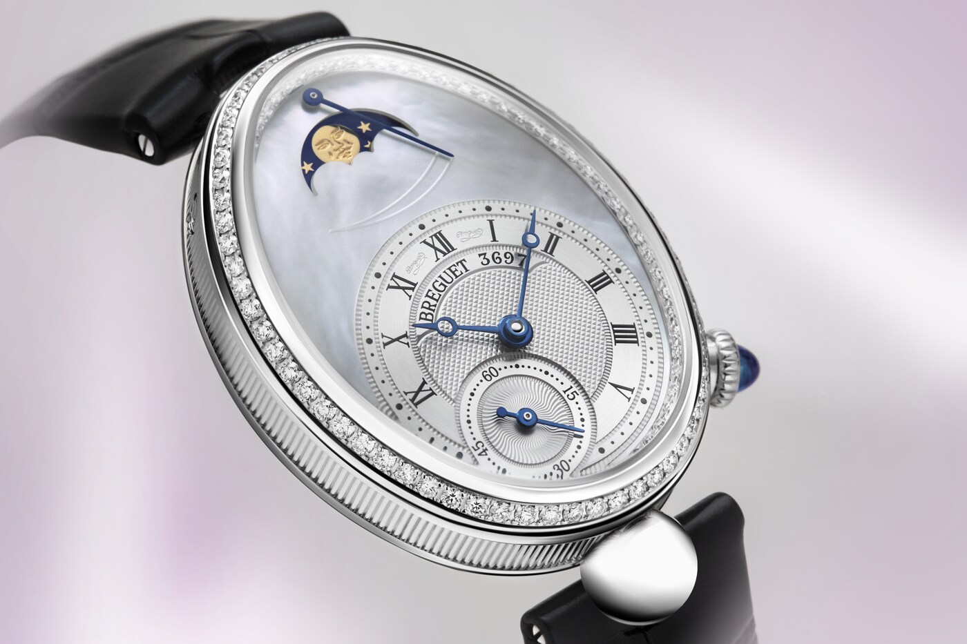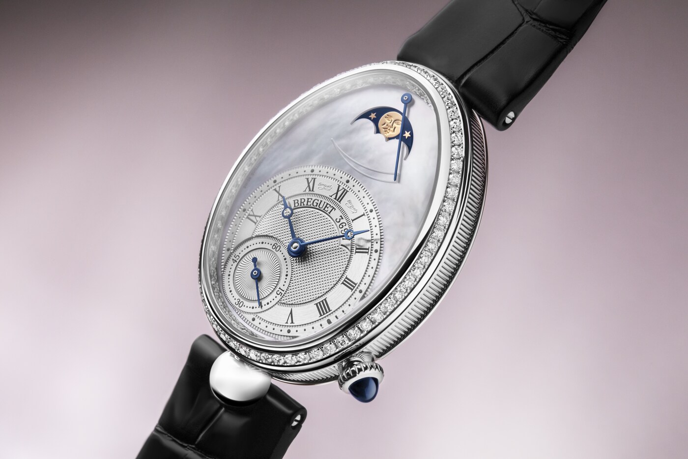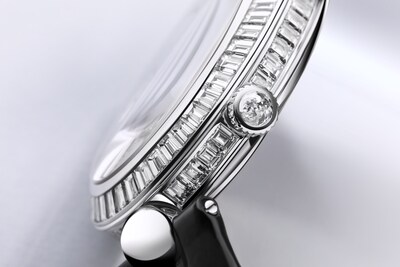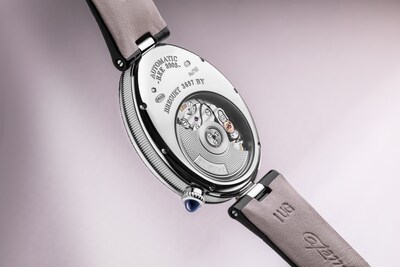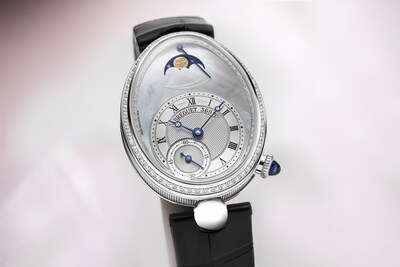 Cette montre ravive les attributs principaux de la première montre conçue pour être portée au poignet que sont la phase de lune et l’indicateur de réserve de marche.