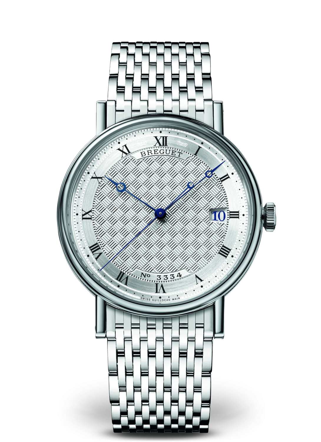 Creazione Breguet per eccellenza, questa referenza presenta tutte le caratteristiche della collezione Classique: carrure scanalata, fondello trasparente, anse del cinturino saldate, quadrante con finitura smaltata “Grand feu” oppure con lavorazione guilloché, e infine le inconfondibili lancette Breguet a “pomme excentrée”.