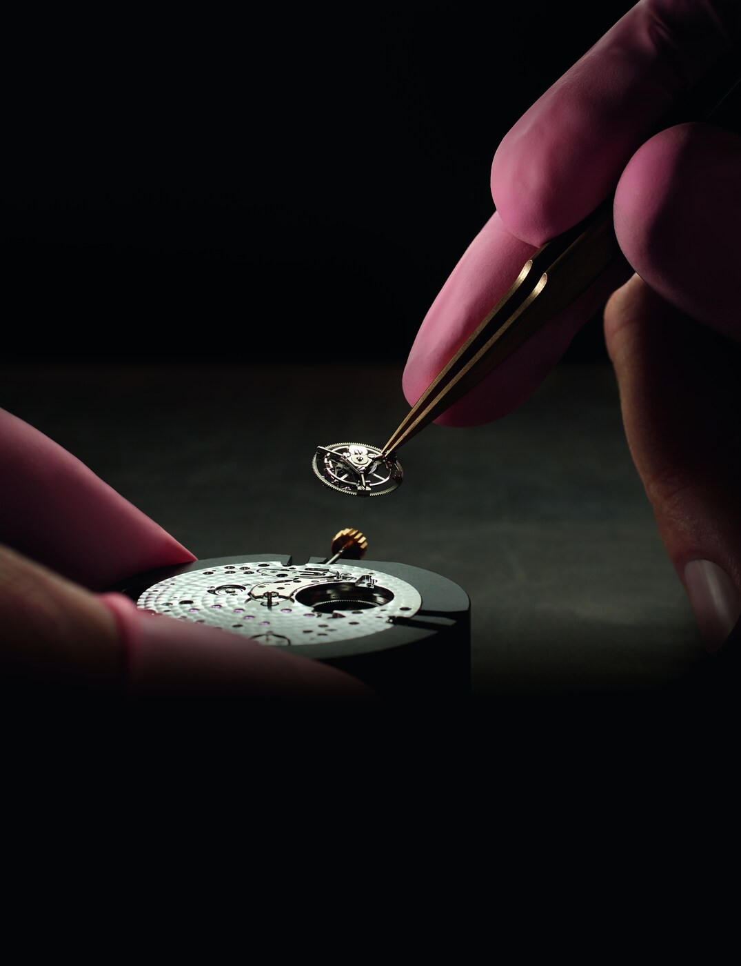 Sotto il quadrante in smalto “Grand feu” spicca il movimento a carica automatica con tourbillon ultrapiatto, visibile attraverso il fondello in vetro zaffiro.
