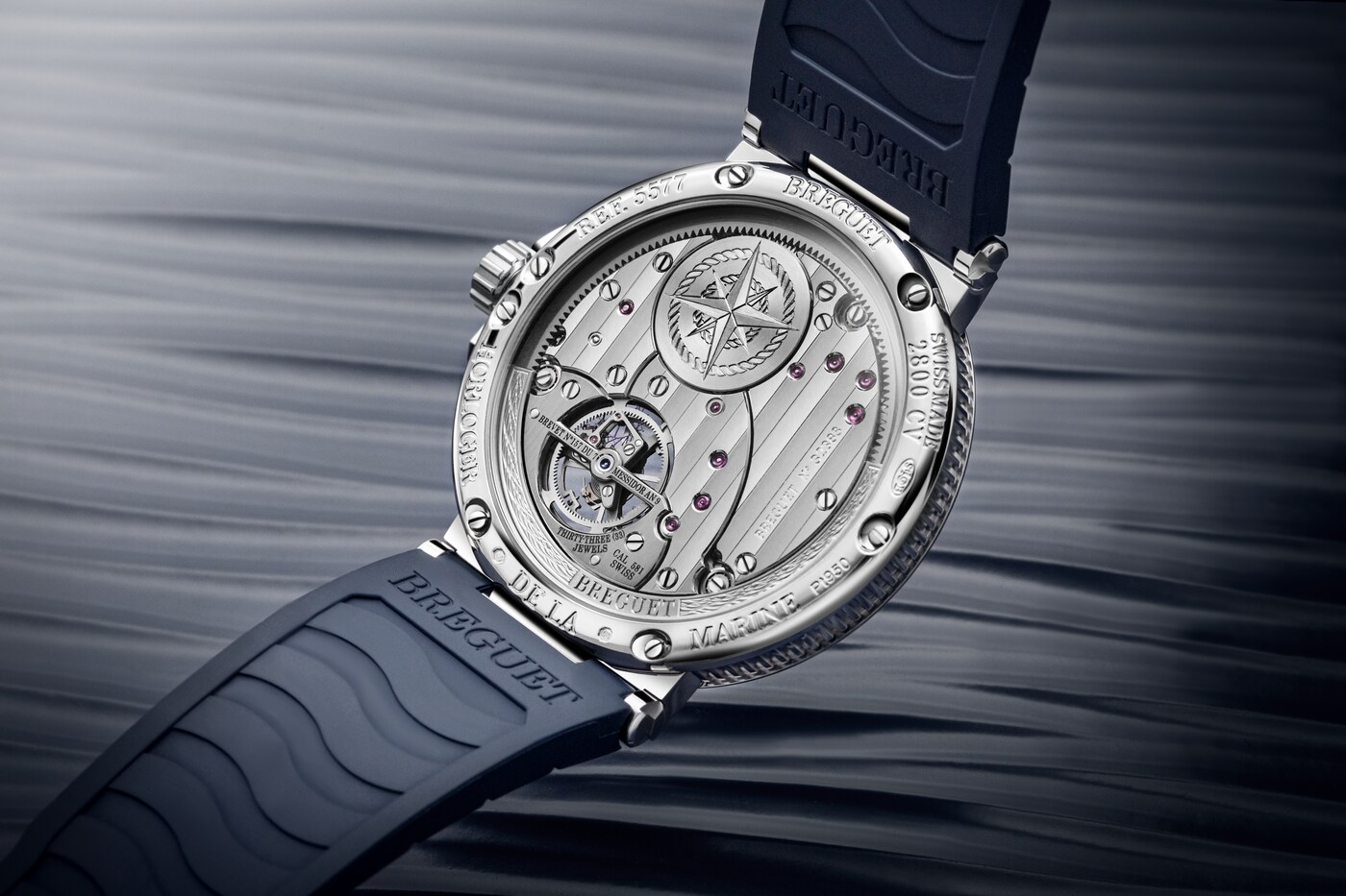 Il Marine 5577 vanta l’invenzione più emblematica del fondatore di Breguet, un tourbillon.