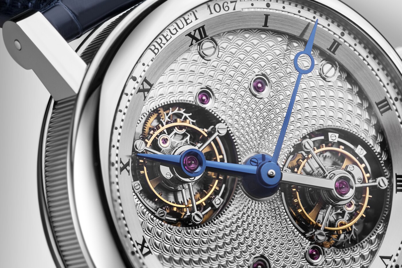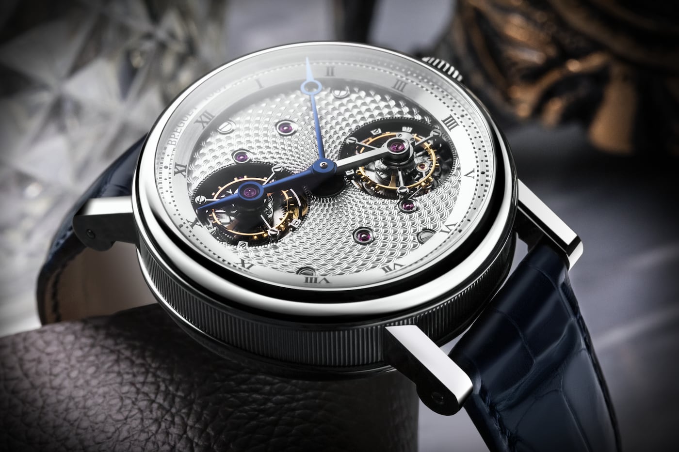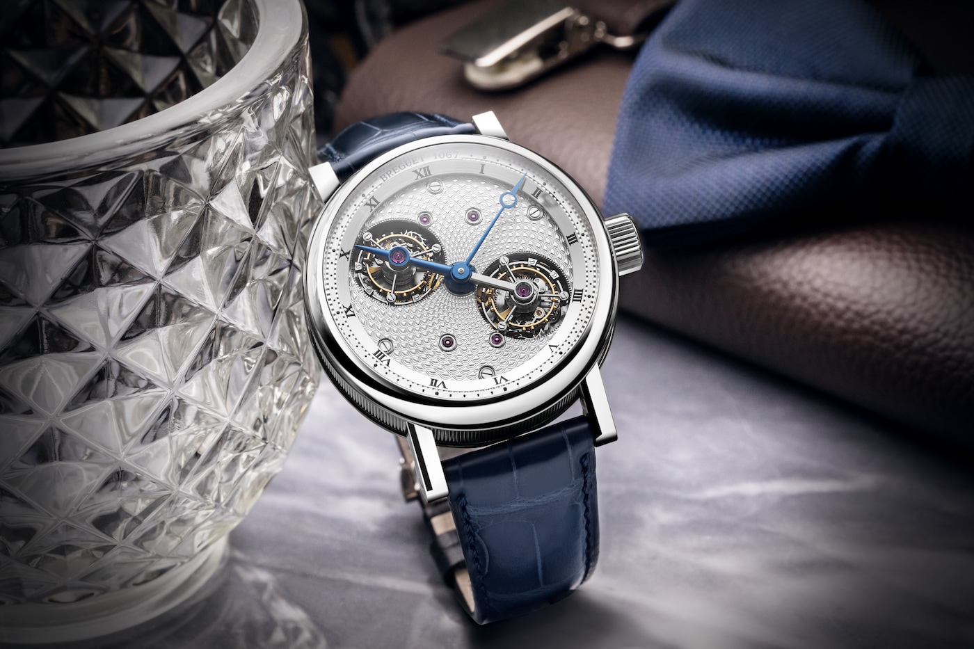 このタイムピースは、それぞれ完全に独立して時針となるブリッジで回転する2つのトゥールビヨンを搭載しています。