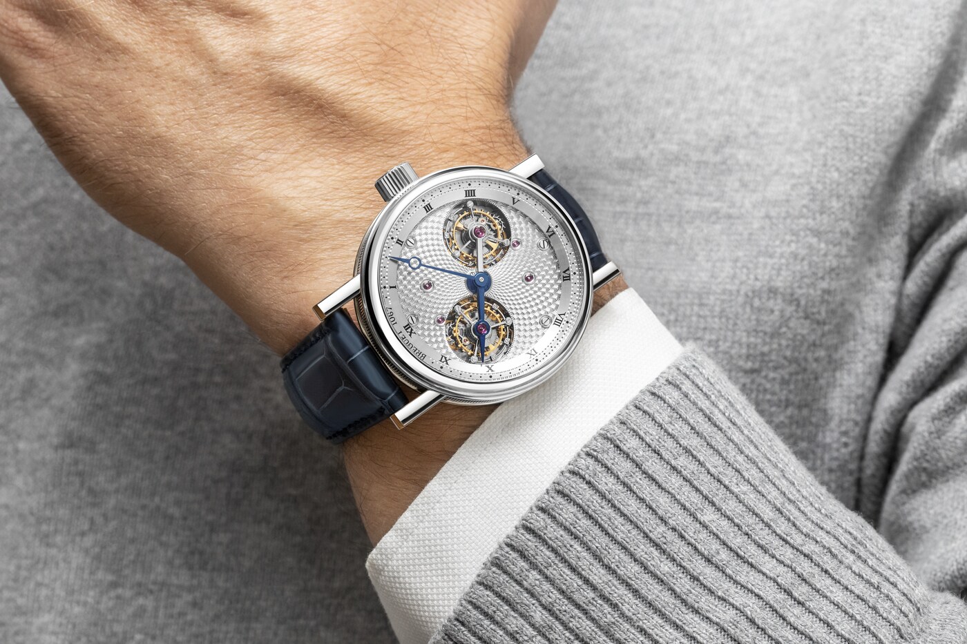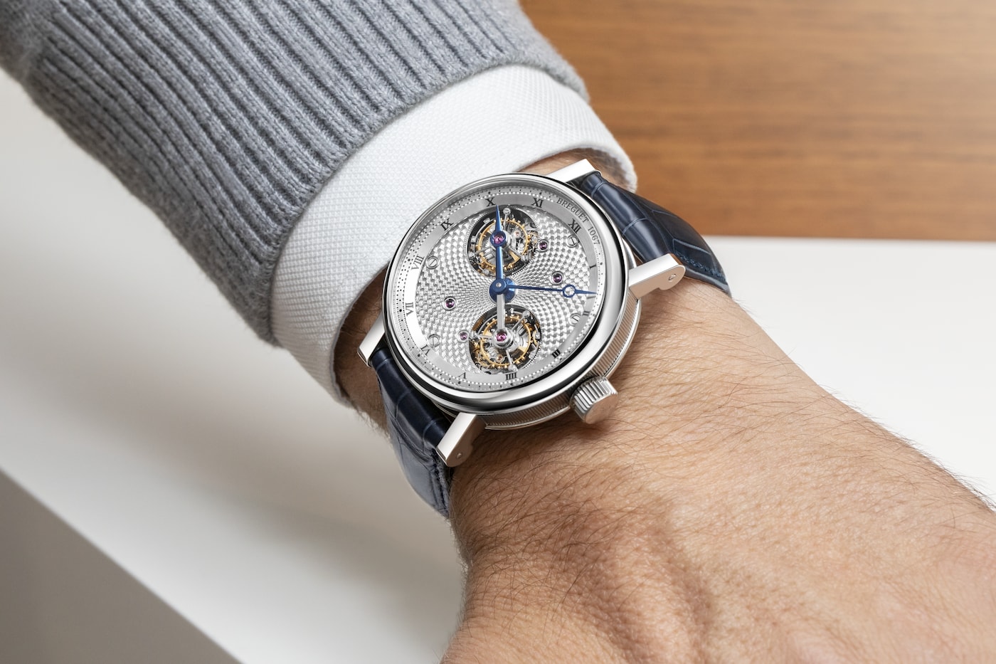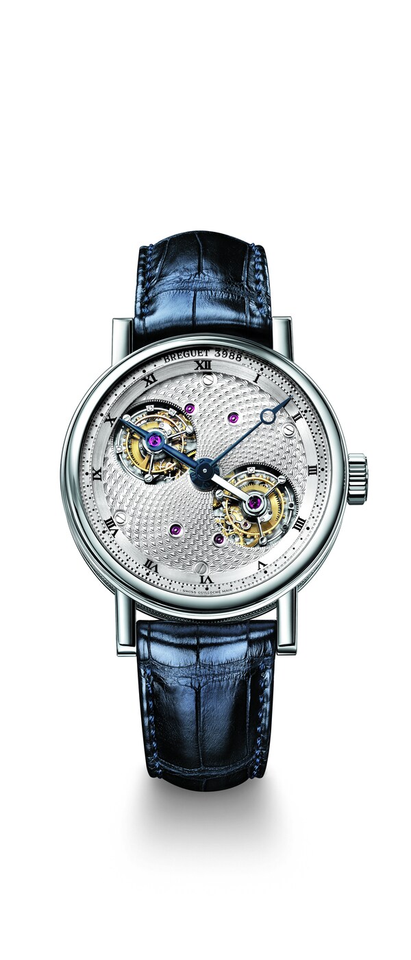 このタイムピースは、それぞれ完全に独立して時針となるブリッジで回転する2つのトゥールビヨンを搭載しています。