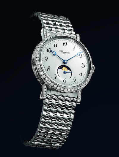30mmのゴールド製ケースを纏ったこのタイムピースは、「グラン・フー」ホワイトエナメルダイヤルにブレゲ数字、またはギヨシェ彫りダイヤルにローマ数字をあしらったダイヤルをご用意しています。ブレゲはさらに、ダイヤセッティングを施したベゼルとラグや、異なるタイプのストラップも提供しています。