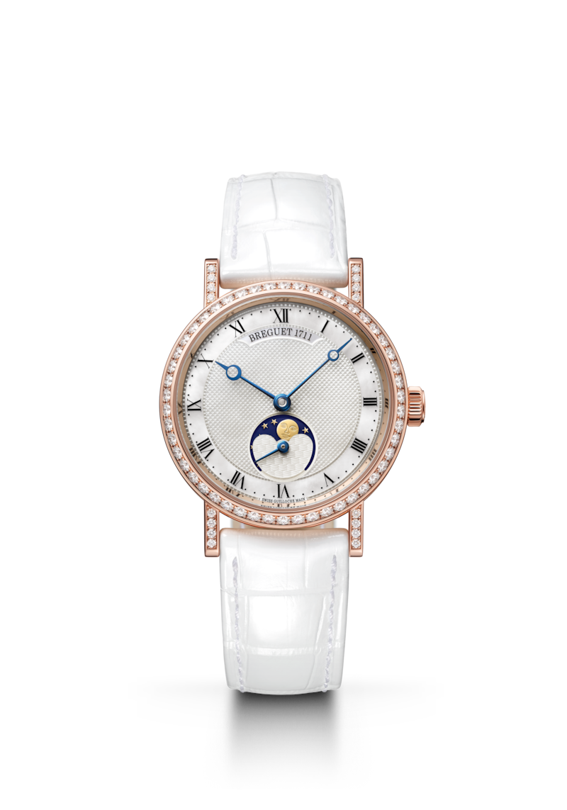 30mmのゴールド製ケースを纏ったこのタイムピースは、「グラン・フー」ホワイトエナメルダイヤルにブレゲ数字、またはギヨシェ彫りダイヤルにローマ数字をあしらったダイヤルをご用意しています。ブレゲはさらに、ダイヤセッティングを施したベゼルとラグや、異なるタイプのストラップも提供しています。