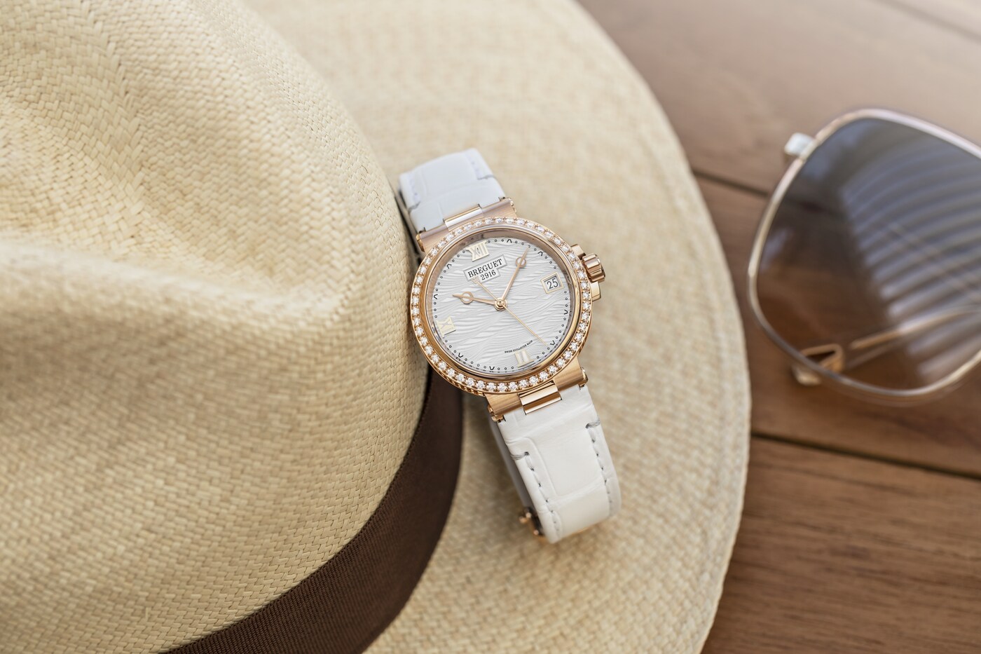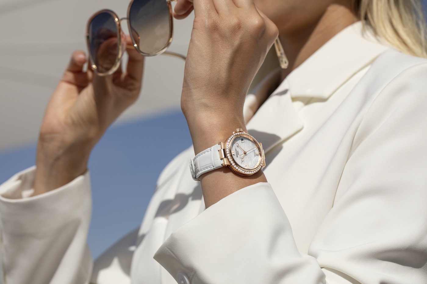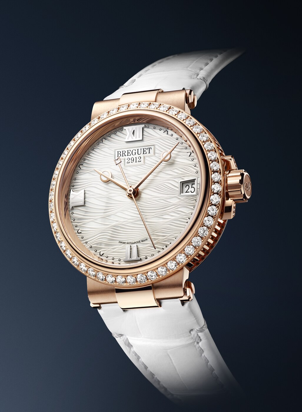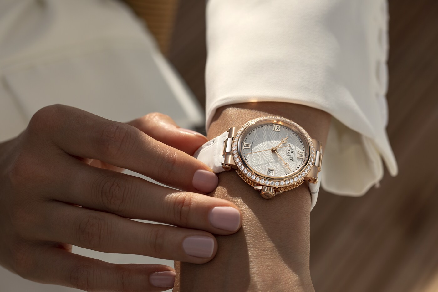 「マリーン」コレクションのスポーティでダイナミックな個性が、繊細なダイヤモンドセッティングと融合します。