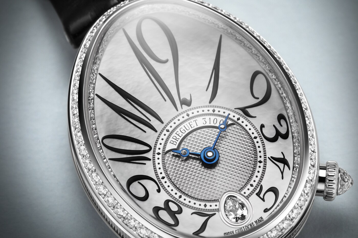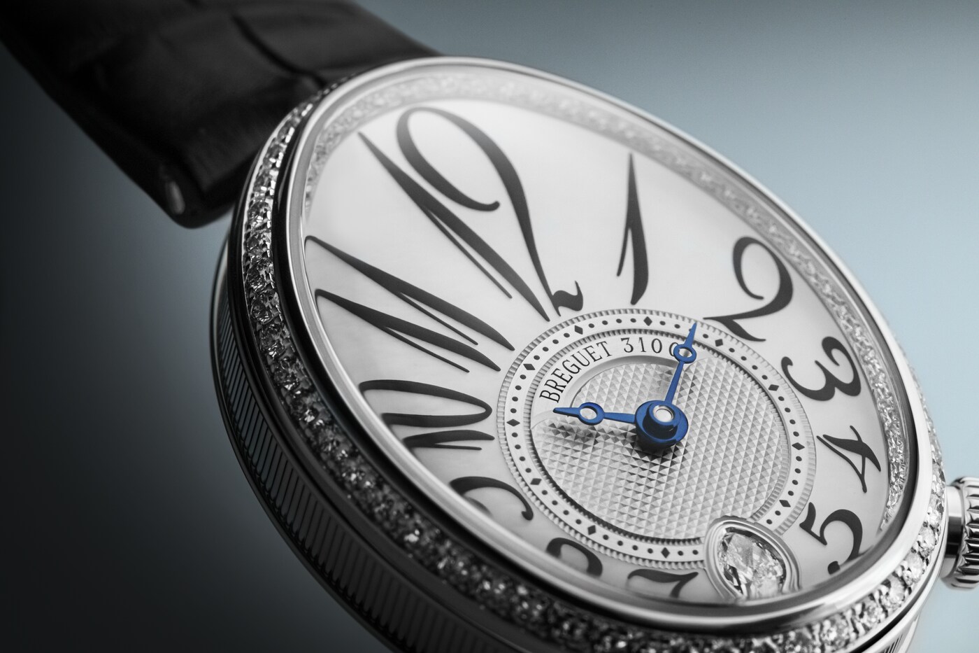 ダイヤルのカーブと美しく融合しながらチャプターリングを囲む、丸みを強調してアレンジされたブレゲ数字が際立つモデルです。