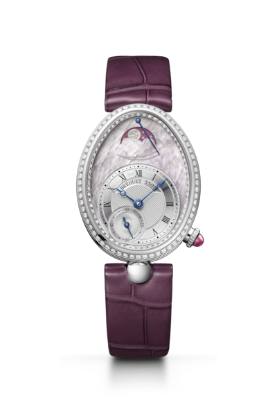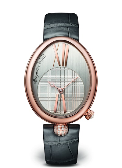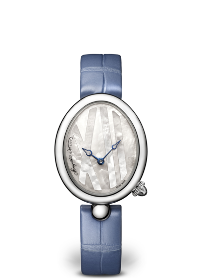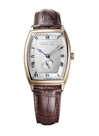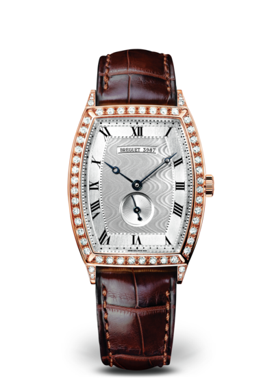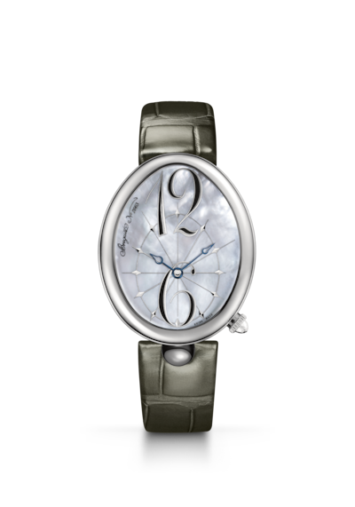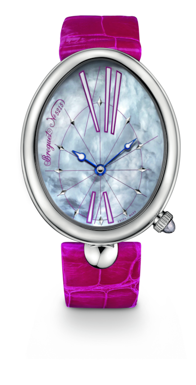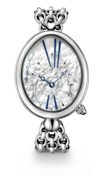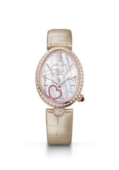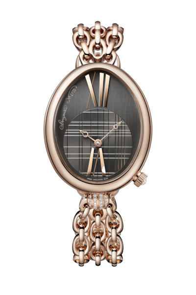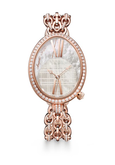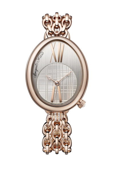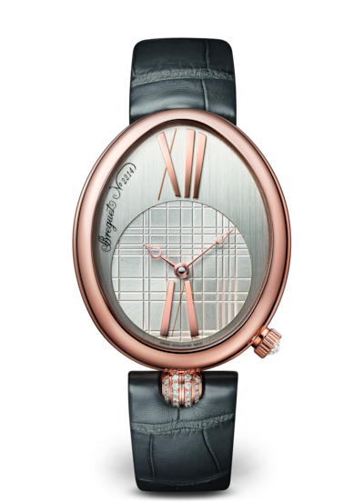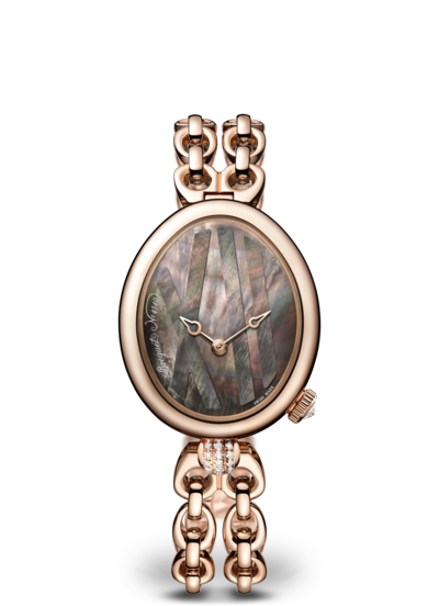 ブレゲを代表するモデルのひとつ、クイーン・オブ・ネイプルズ8918に新たなデザインが加わりました。ローズゴールドのケースに収められたグレーの「グラン・フー」エナメルダイヤルには、ブレゲ数字、オフセンターのアワーサークル、そして特徴的な「アップルハンド」のブレゲ針が配されています。ベゼル、フランジ…