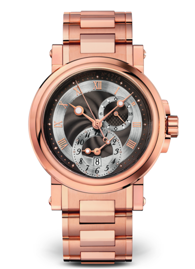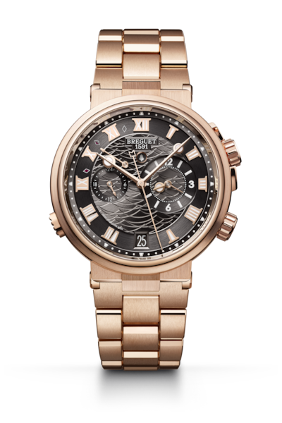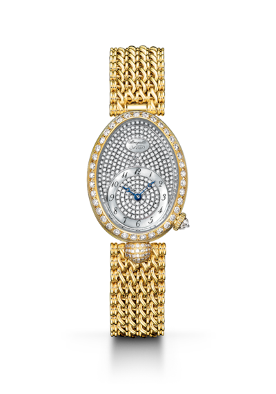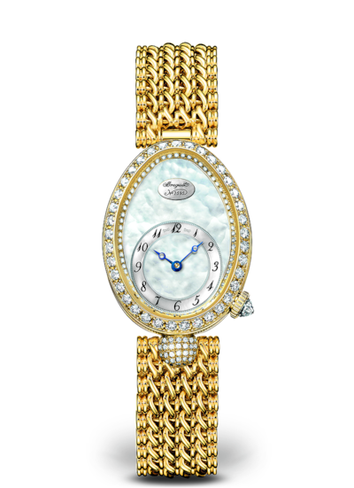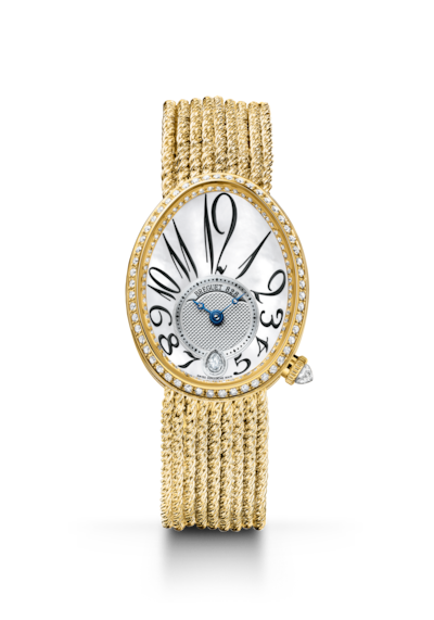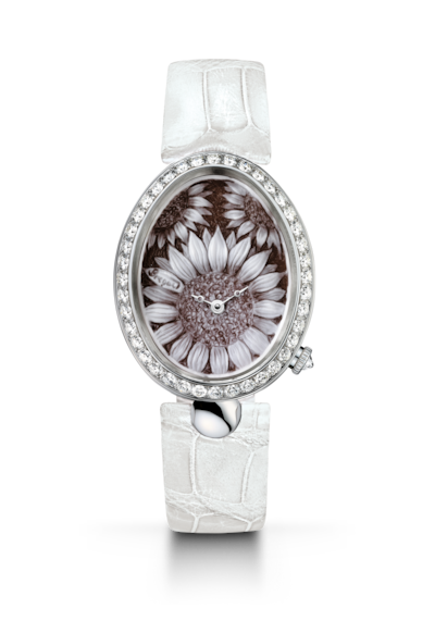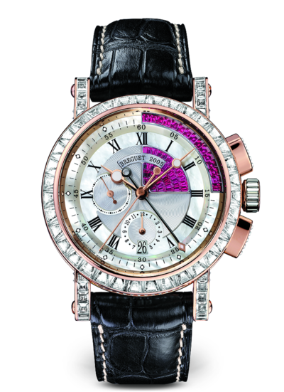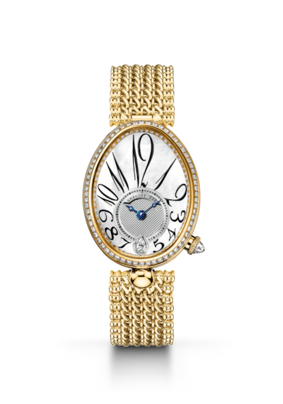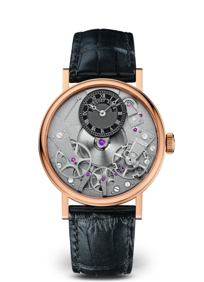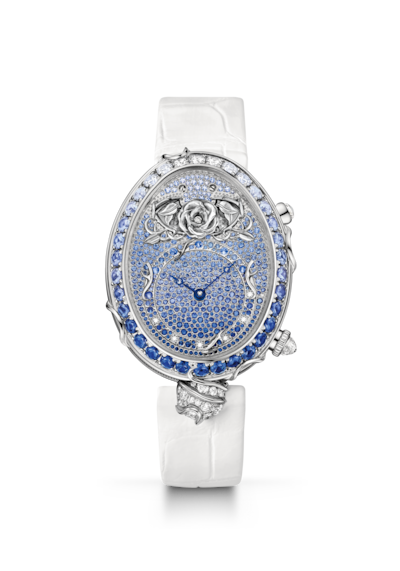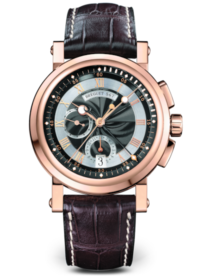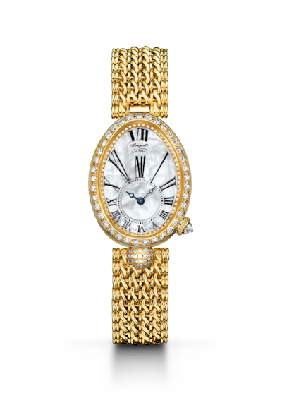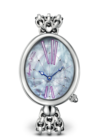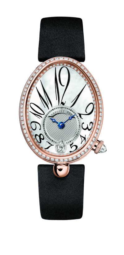 ブレゲを代表するモデルのひとつ、クイーン・オブ・ネイプルズ8918に新たなデザインが加わりました。ローズゴールドのケースに収められたグレーの「グラン・フー」エナメルダイヤルには、ブレゲ数字、オフセンターのアワーサークル、そして特徴的な「アップルハンド」のブレゲ針が配されています。ベゼル、フランジ…