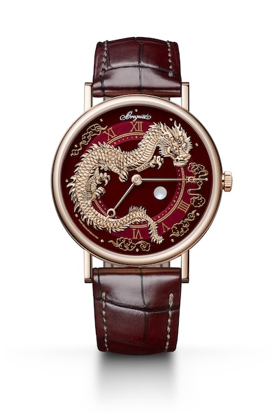 龍を象徴する今年、メゾンは2つのトゥールビヨンを備えた「クラシック」の新バージョンを発表します。タイムピースの中を旋回している手彫りの金の龍は、その手の間にマザーオブパールを抱えています。伝説によれば、パールは龍に力を与える神聖なものだと言われています。 8本限定のセカンドモデルは、ヴェルメイユレッドの「グラン…