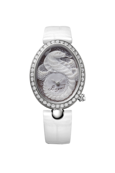 ブレゲは国際女性デーを記念して、アイコニックなコレクションからミントグリーンカラーの新モデル「クイーン・オブ・ネイプルズ 8918」を発表します。ホワイトのマザーオブパールの文字盤に配されたチャプターリングは、スノーセッティングによって輝きを放っており、 文字盤の数字は、2色のグリーンを重ね合わせることで…