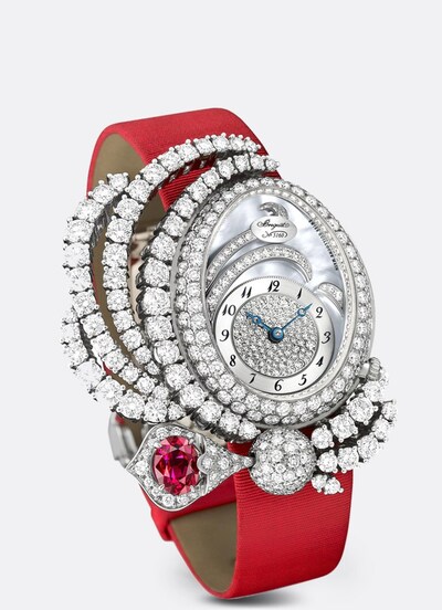 恋人たちの日を称え、メゾンは赤を基調としたアイコニックなクイーン・オブ・ネイプルズの新しいモデルを発表します。そのホワイト マザーオブパール ダイヤルは、66個のルビーが手作業でセッティングされたインナーベゼルで囲まれており、ベゼルにはダイヤモンドのパヴェセッティング…