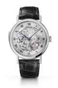 미닛 리피터 시계에 열정을 가지고 있던 아브라함 루이 브레게는 1783년, 과거에 사용되었던 종 모양의 공 대신에 블레이드 스프링에서 소리를 내도록 전체 메커니즘을 개선하여 음질을 향상시시키는 아이디어를 떠올렸습니다. 이 모델에서는 완벽한 사운드를 제공하기 위해 다양한 요소의 소재와 크기를 세심하게 고려했습니다. 브레게는 24시간 인디케이터와 더블 세컨즈를 갖춘 기요셰 다이얼을 비롯하여 오늘날에도 여전히 소수의 장인만이 숙달할 수 있는 오래된 기술인 ‘그랑 푀’ 에나멜로 디자인 측면을 강조했습니다.