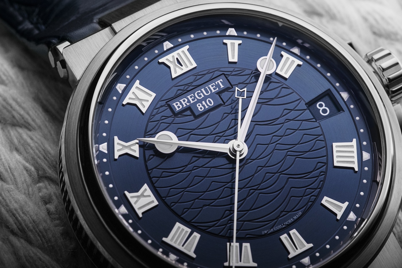 간결함이 돋보이는 3개의 핸즈가 장식된 시계의 3시 방향에는 캘린더 인디케이터가 자리합니다.