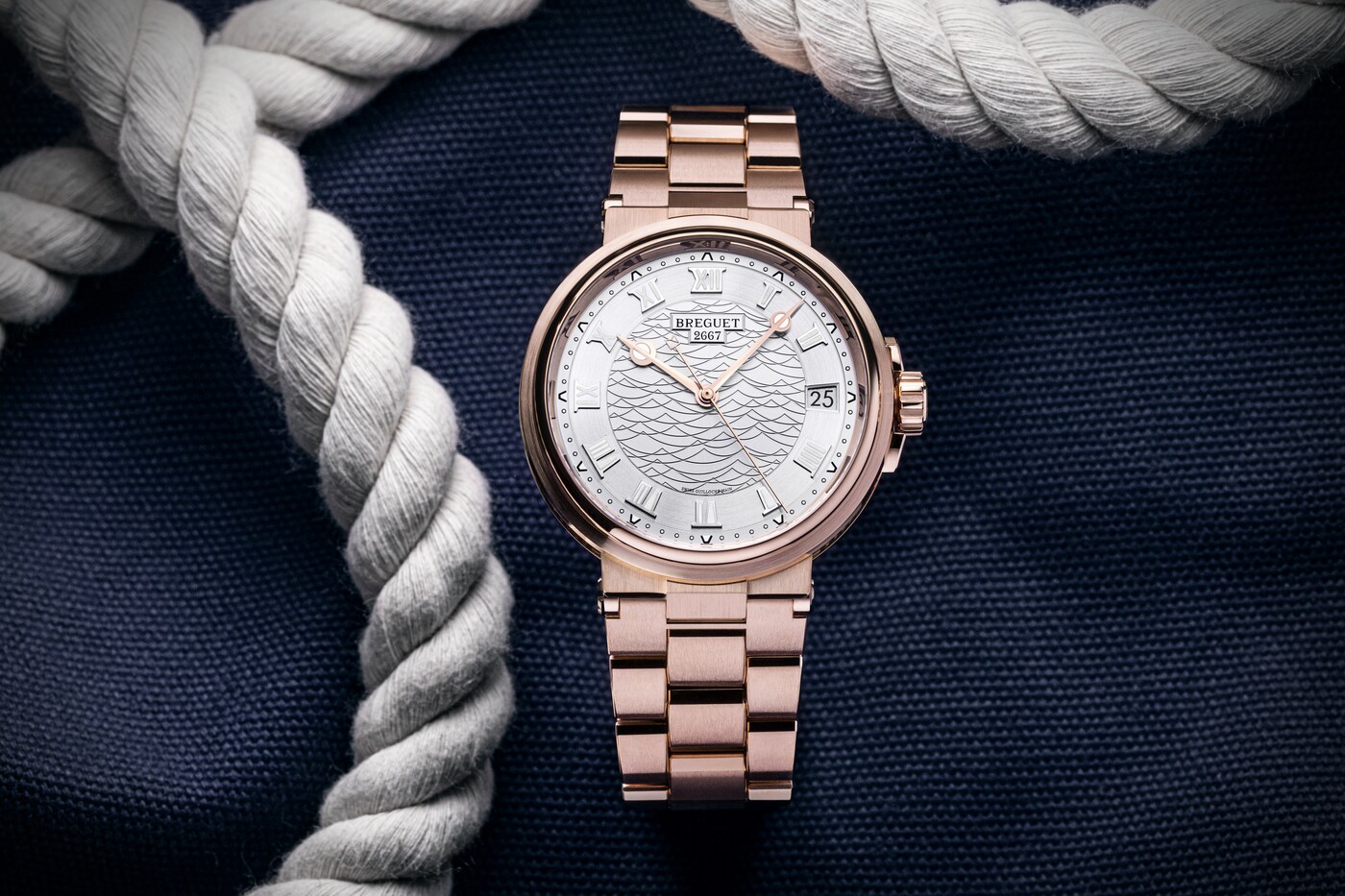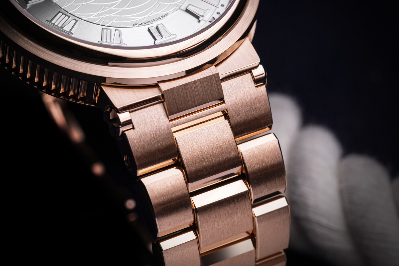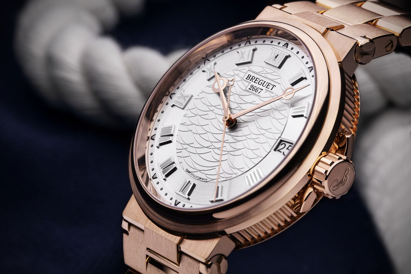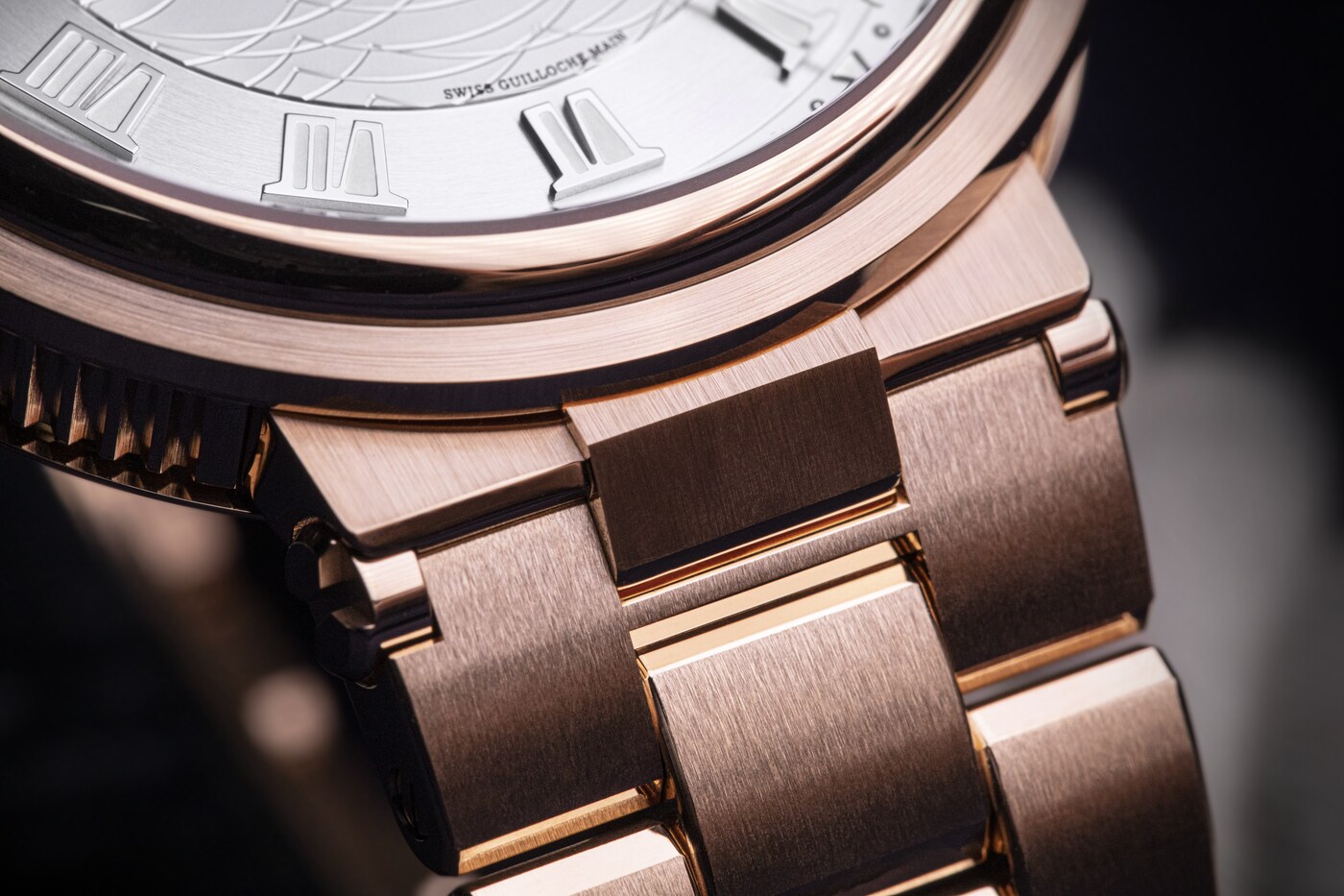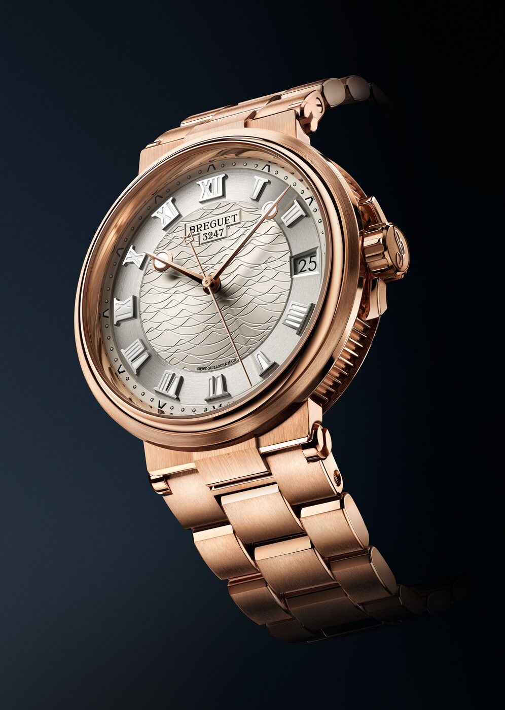 간결함이 돋보이는 3개의 핸즈가 장식된 시계의 3시 방향에는 캘린더 인디케이터가 자리합니다.