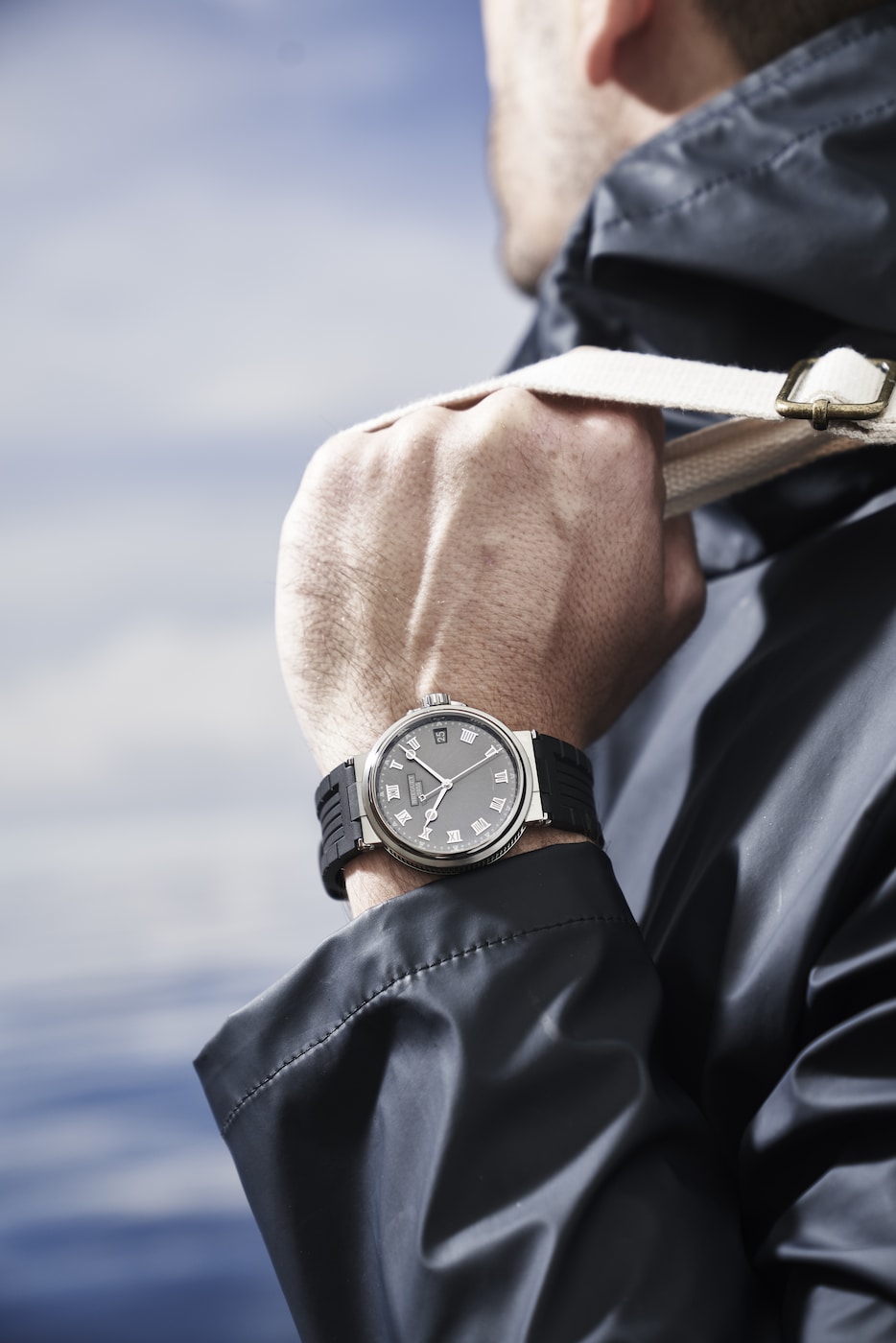 간결함이 돋보이는 3개의 핸즈가 장식된 시계의 3시 방향에는 캘린더 인디케이터가 자리합니다.