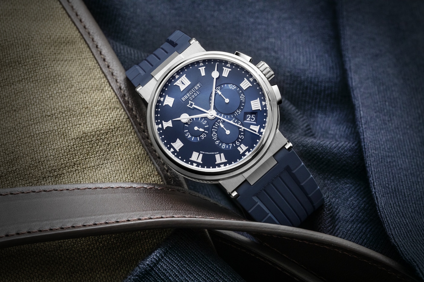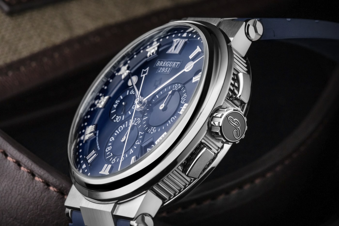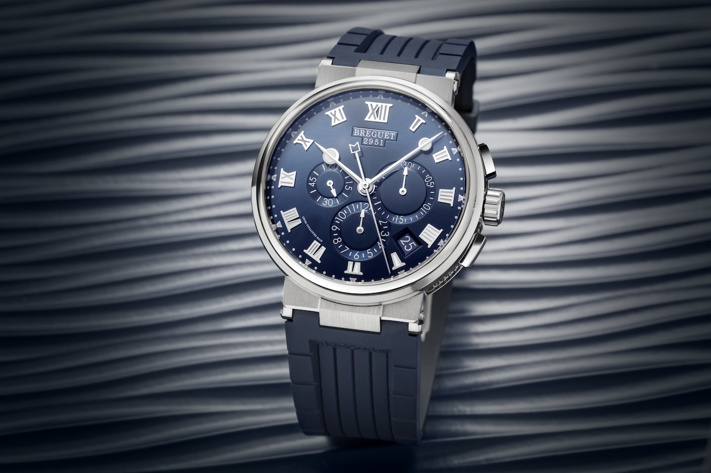 커다란 중앙 핸드로 표시되는 시계는 플라이백 크로노그래프 기능과 4시와 5시 사이에 캘린더 인디케이터를 갖추고 있습니다.