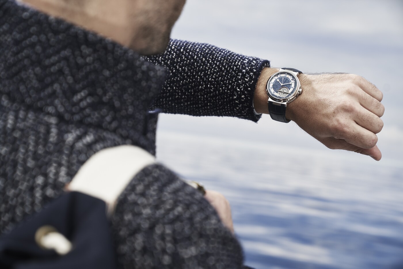 균시차는 진귀하고 매혹적인 시계 컴플리케이션 중 하나로, 태양의 시간과 분을 뜻하는 진 태양시와 상용시에 해당하는 평균 태양시 간의 차이를 표시합니다. 균시차 캠은 투르비용 축에서도 볼 수 있습니다. 마린 5887에서는 각면 처리한 골드 태양 장식의 태양시 핸드를 사용하여 태양시와 분을 바로 확인할 수 있습니다. 여기에 퍼페추얼 캘린더가 추가되어 9시와 3시 사이에서 다양한 정보를 표시합니다. 60초 투르비용에는 브레게 실리콘 밸런스 스프링이 장착된 티타늄 케이지가 있습니다. 이 혁신적인 기능을 통해, 밸런스 스프링은 셀프 와인딩 모델에서 특히 안정된 파워 리저브를 유지하면서 4Hz의 진동수에 도달할 수 있습니다. 7시와 9시 사이 표시창에서는 80시간의 파워 리저브를 확인할 수 있습니다. 뒷면의 사파이어 크리스탈 케이스백을 통해 여러 브릿지에 걸쳐 펼쳐진 수공 무브먼트의 인그레이빙을 확인할 수 있습니다.