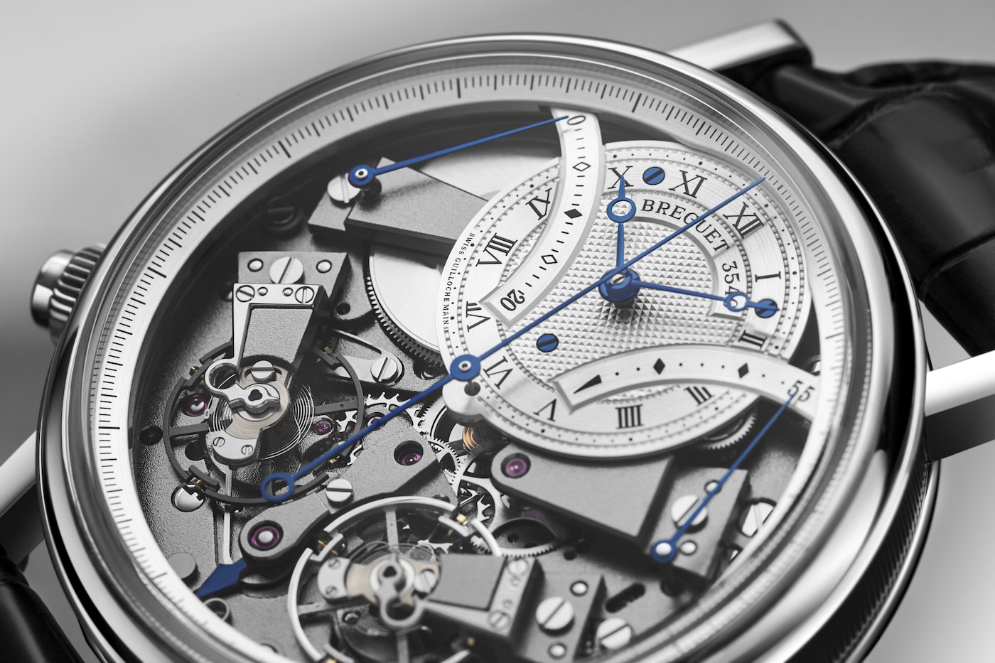 이 시계는 완전히 독립적인 두 개의 기어 트레인을 갖추어 하나는 시간과 분에, 다른 하나는 크로노그래프에 사용됩니다.