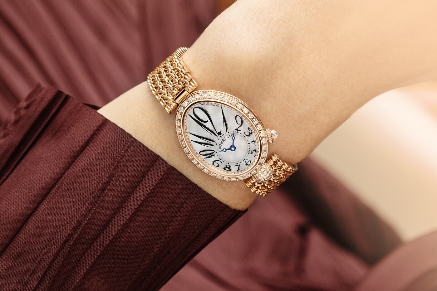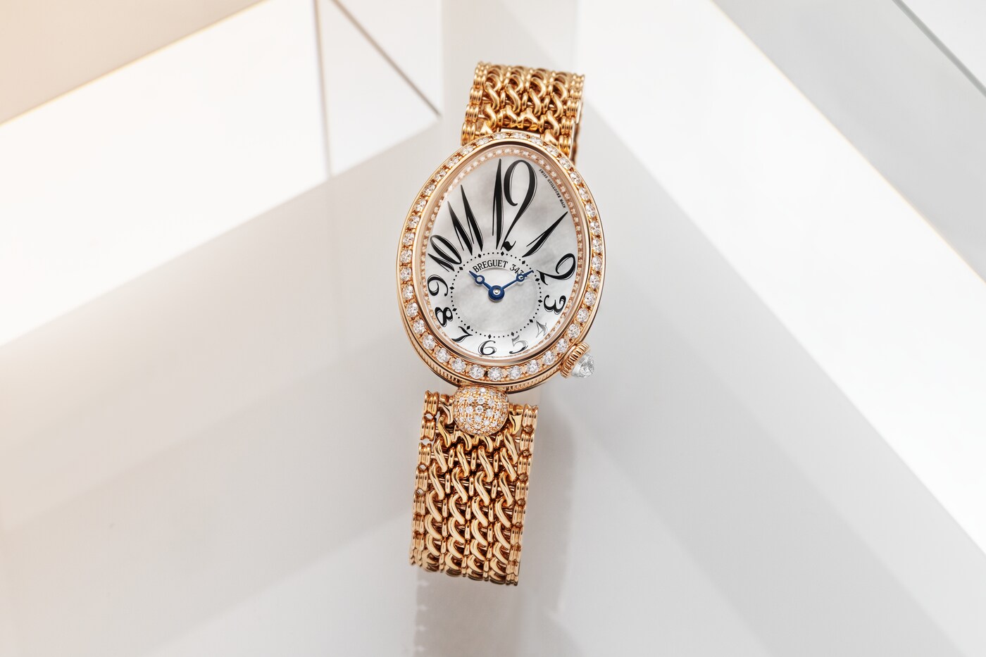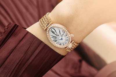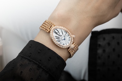 Часовая шкала расположена в нижней части циферблата, равно как и знаменитые вороненые стрелки с наконечником в форме яблока. Эти часы отличаются «ножкой» шаровидной формы, украшенной бриллиантами, в положении «6 часов», заводной головкой, увенчанной бриллиантом огранки «бриолет», в положении «4 часа», а также бриллиантами классической огранки на безеле, фланце и застежке.
