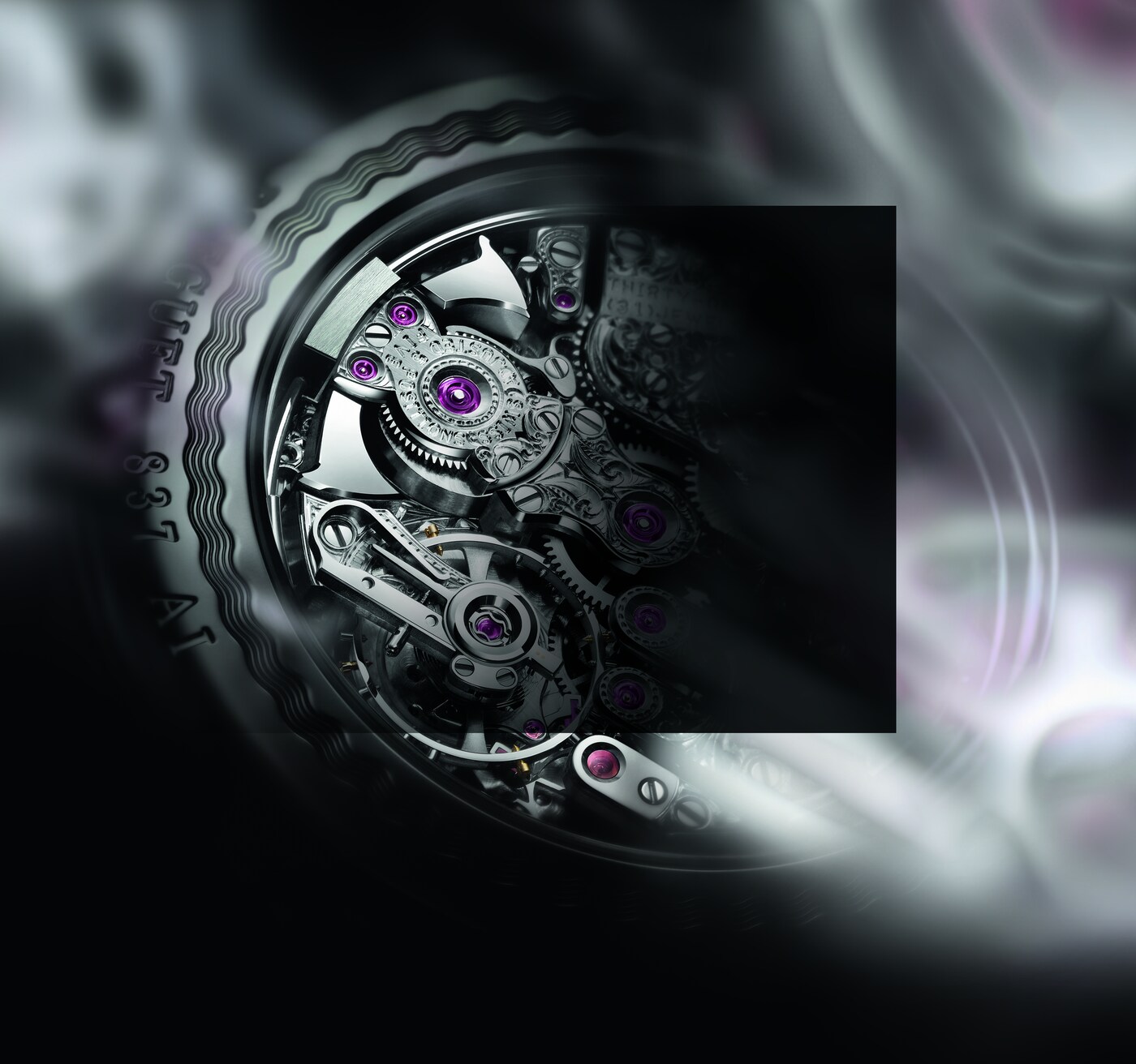8時至10時位置外緣設有報時滑桿,其低調的外型提醒著我們這款腕錶除了顯示時間外,還能透過鳴奏樂音報時。