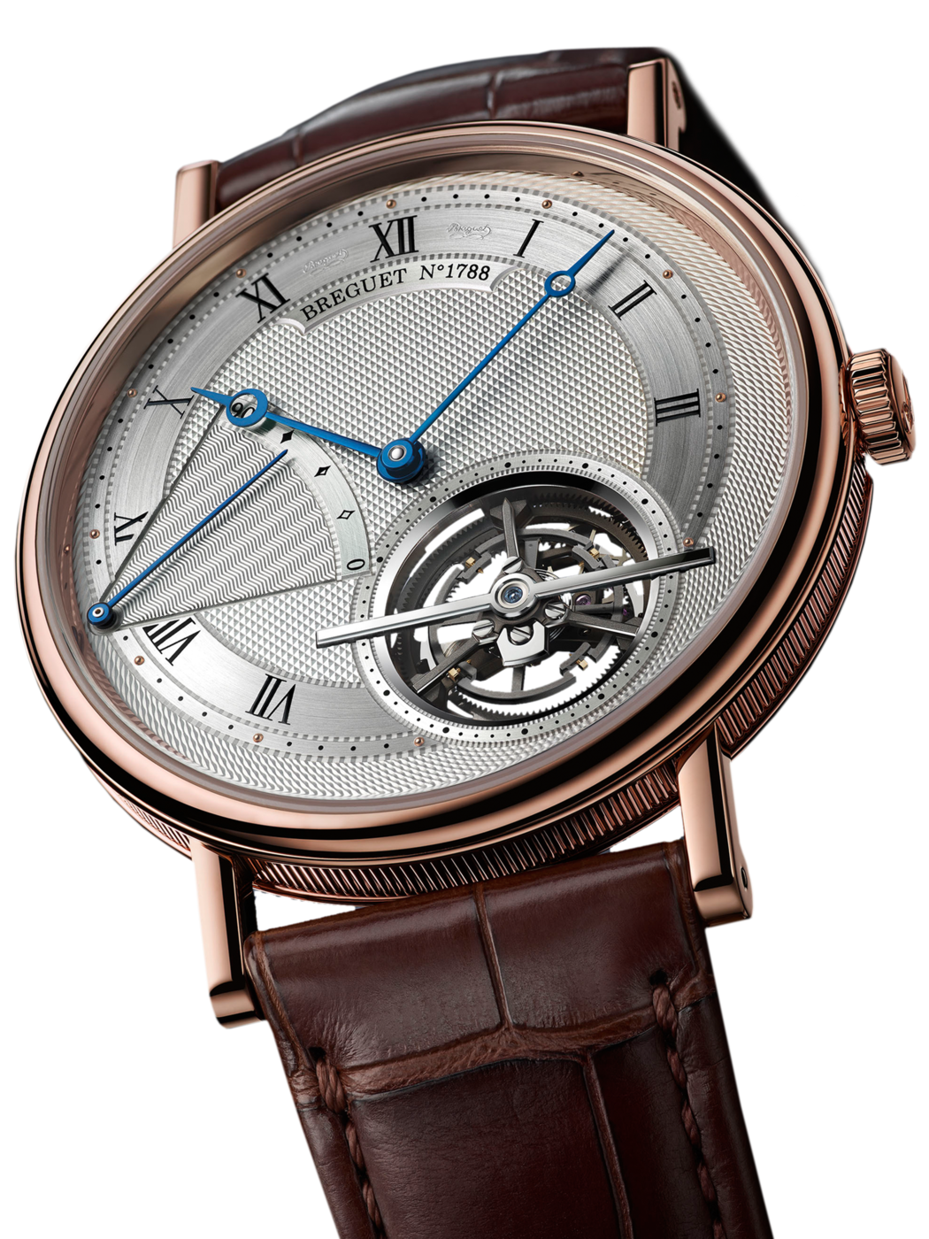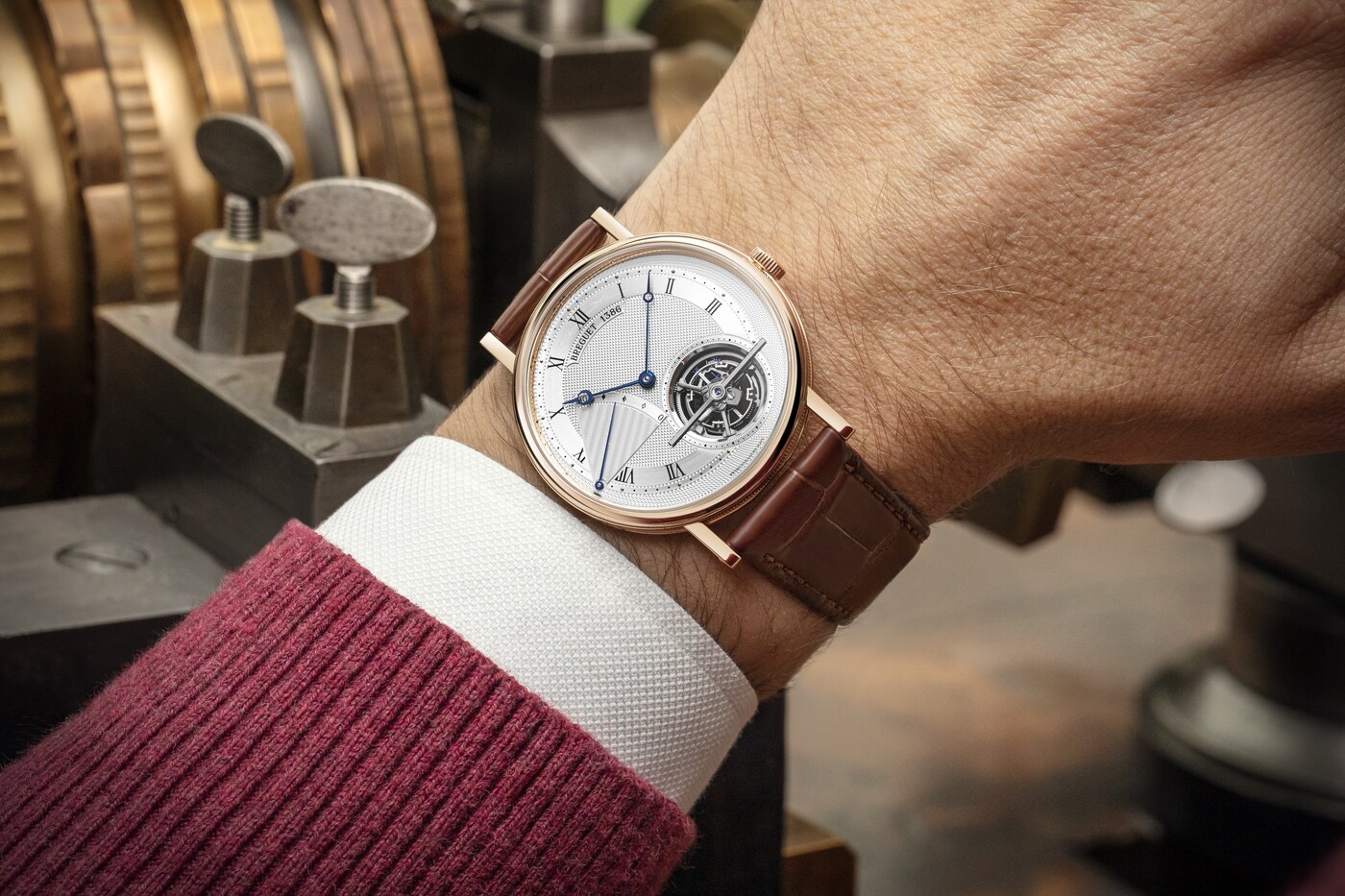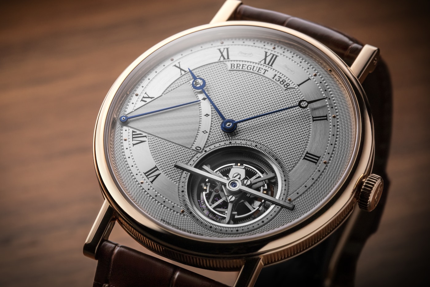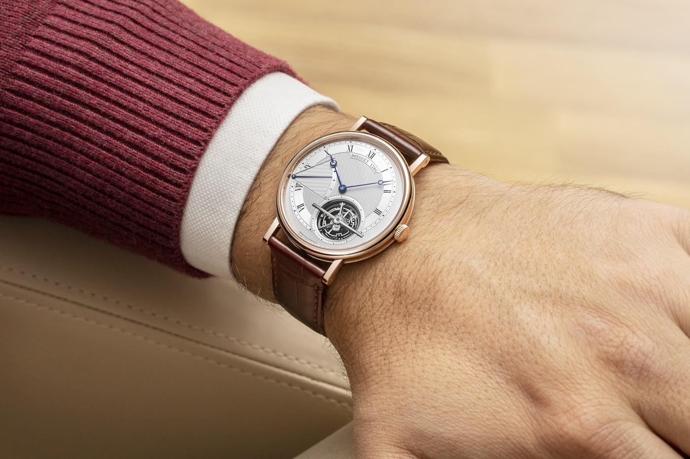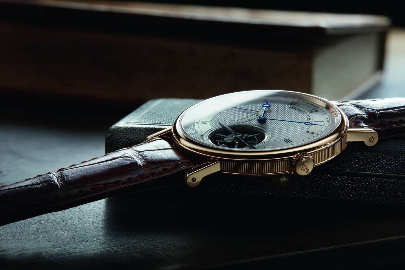 這款腕錶搭載寶璣最為纖薄的陀飛輪自動上鍊機芯。精緻的機刻雕花錶盤搭配傳統寶璣指針。