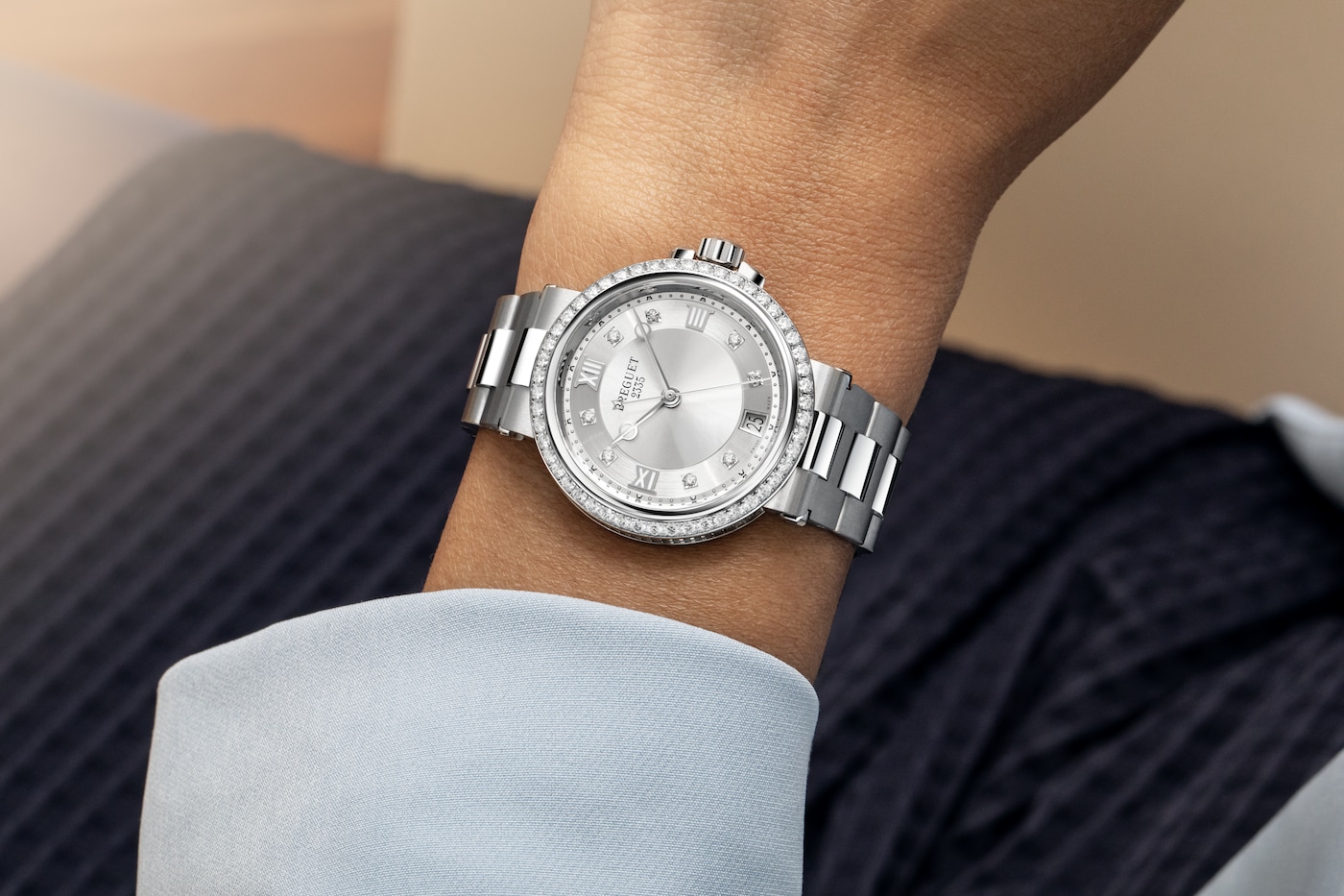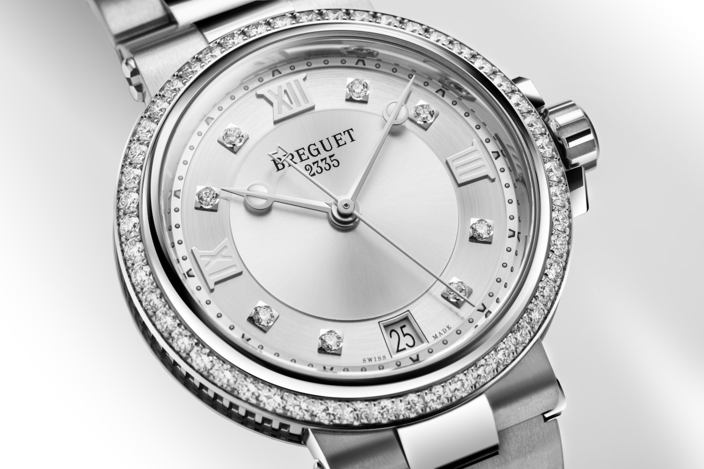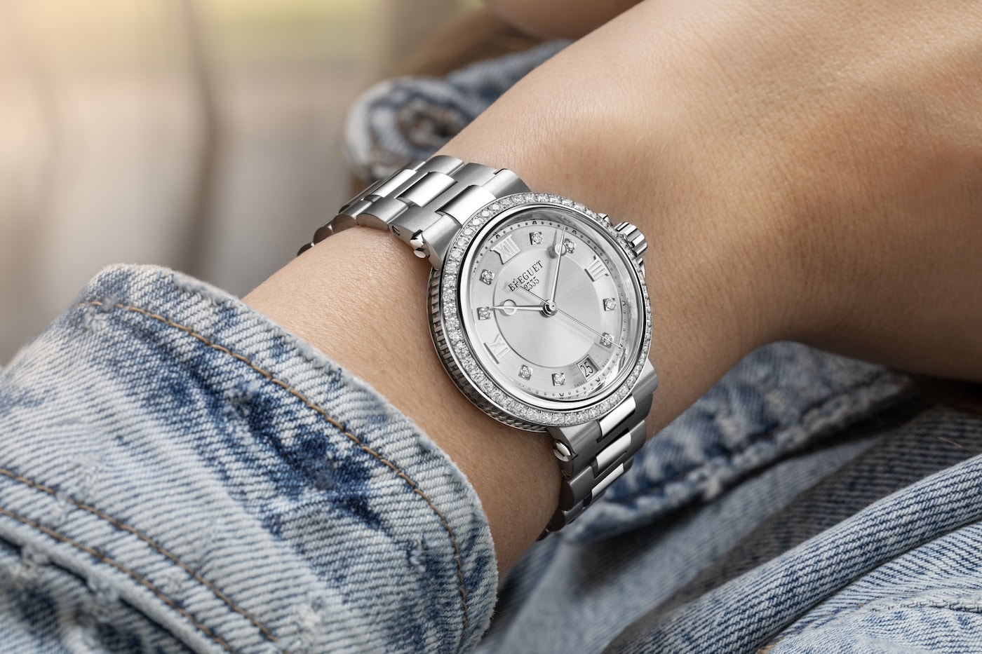 這款腕錶將Marine航海系列的運動風格與華美迷人的寶石鑲嵌和諧相融。