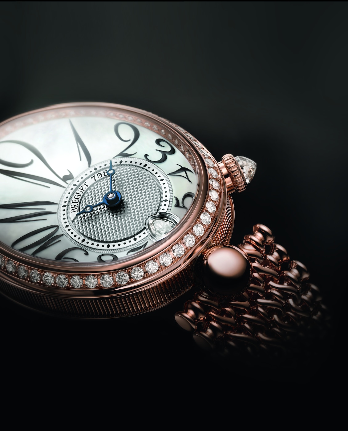 這款腕錶的獨特之處在於寬大的寶璣數字時標,環繞於錶盤和小時圈四周。