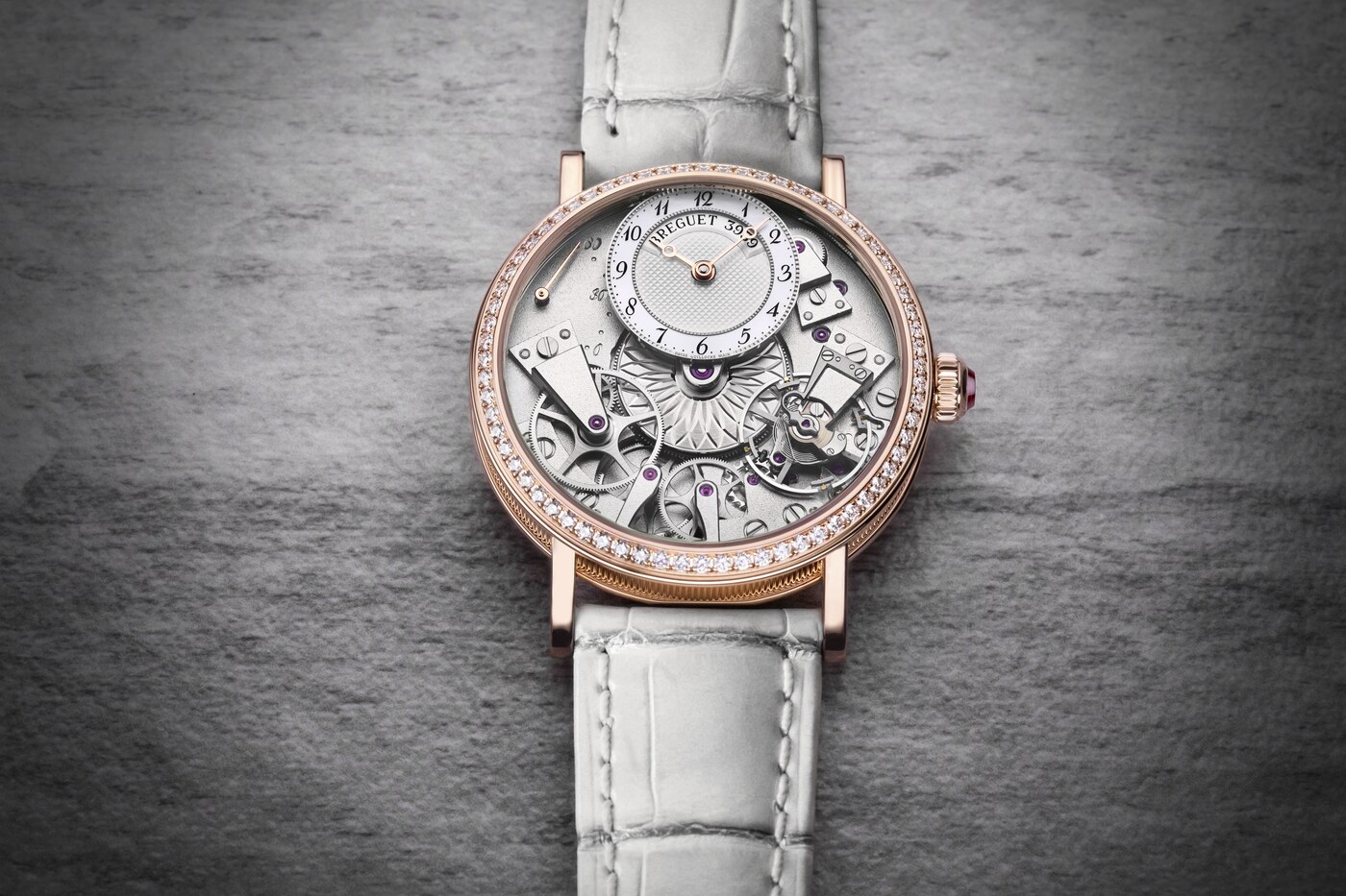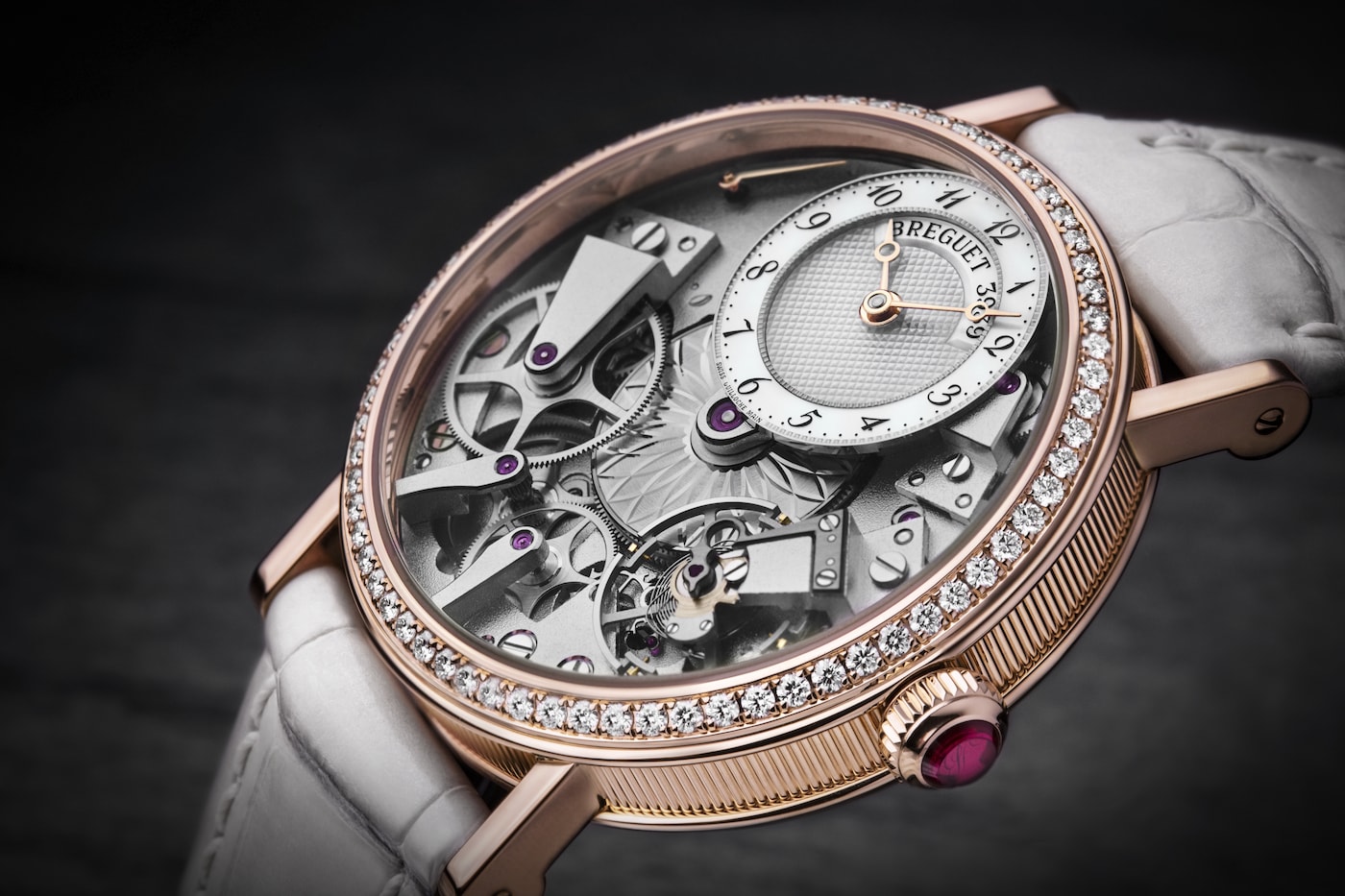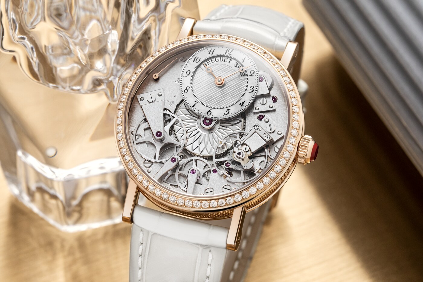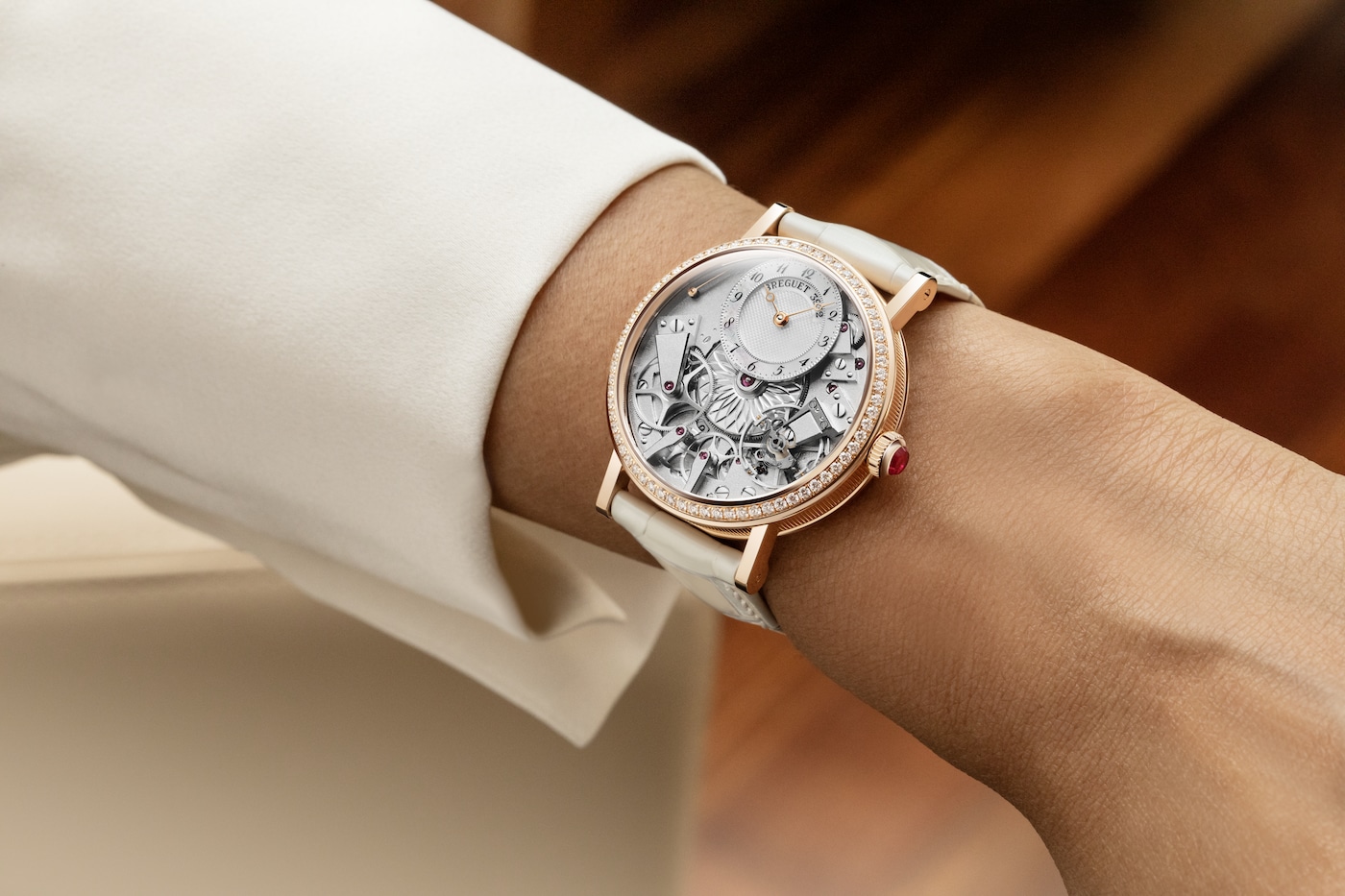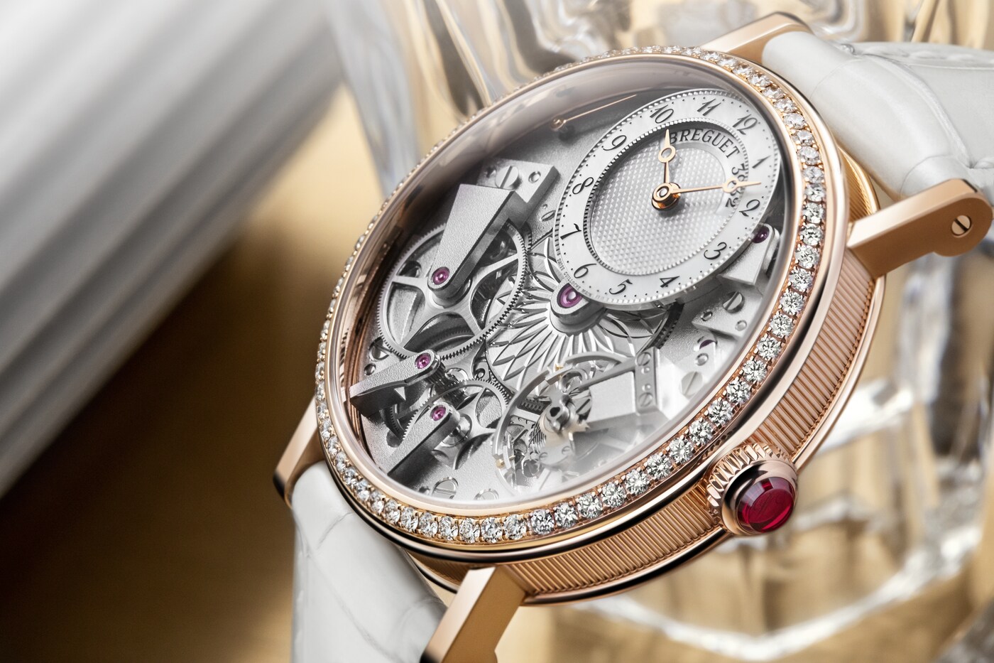 在這款腕錶中,寶璣巧妙融入精緻的珠寶工藝與細膩溫潤的珍珠母貝。